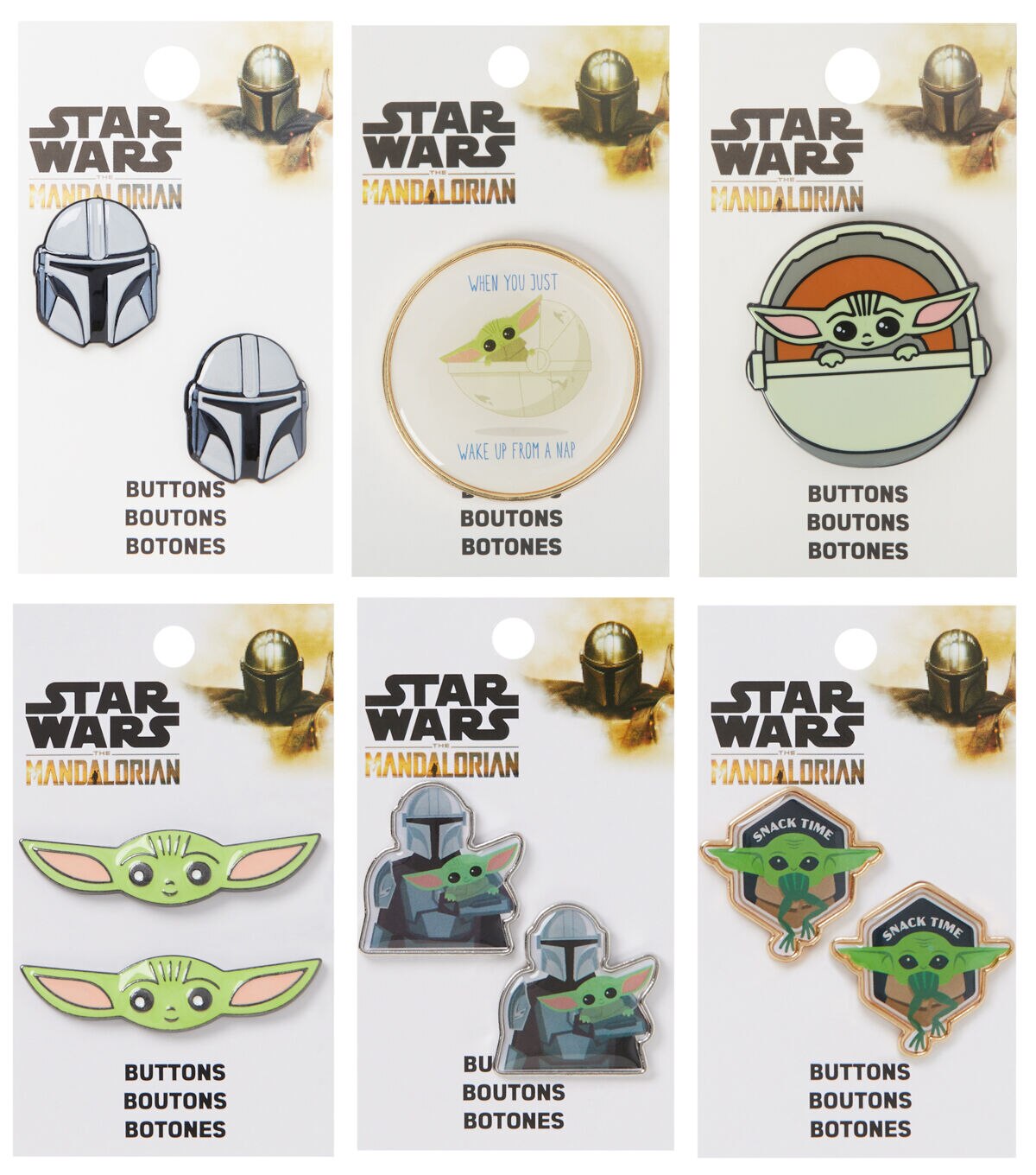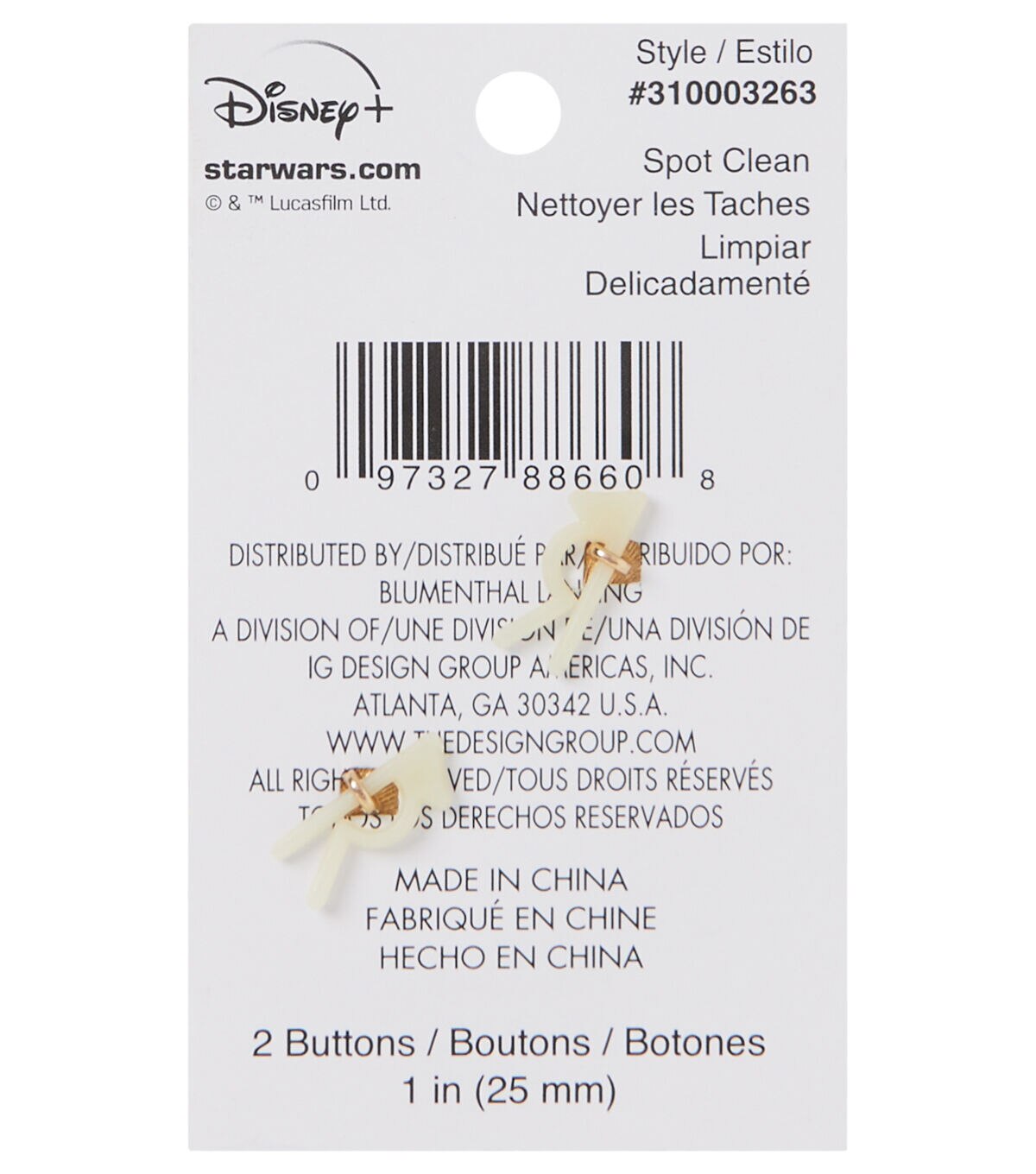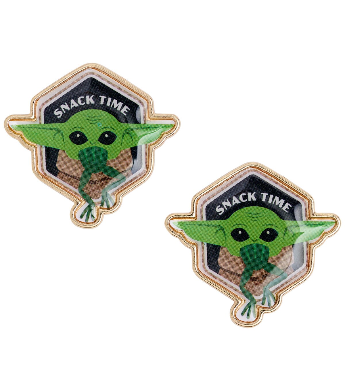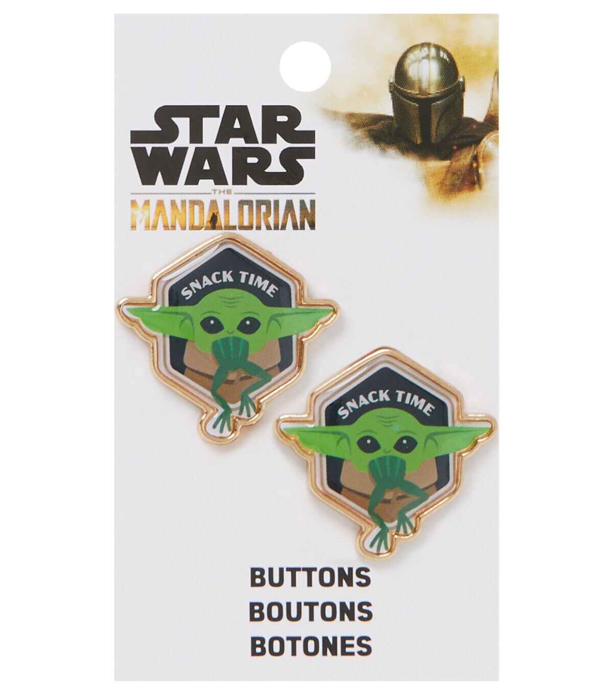 Stitch a sci-fi-themed party costume and embellish it with the Blumenthal Lansing Star Wars Epoxy Shank Buttons - Snack Time. These buttons flaunt a print of the character Child,from the television series ‘Star Wars,’ devouring a frog and the words ‘Snack Time.’ You can also add them to handmade totes,wallets and lots more to perk up their look.