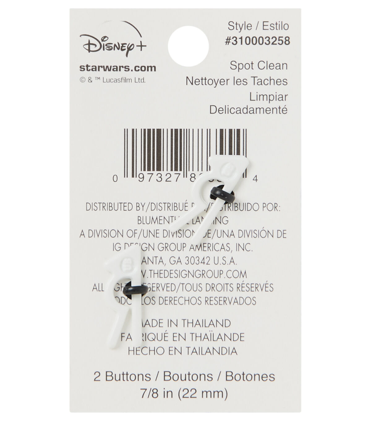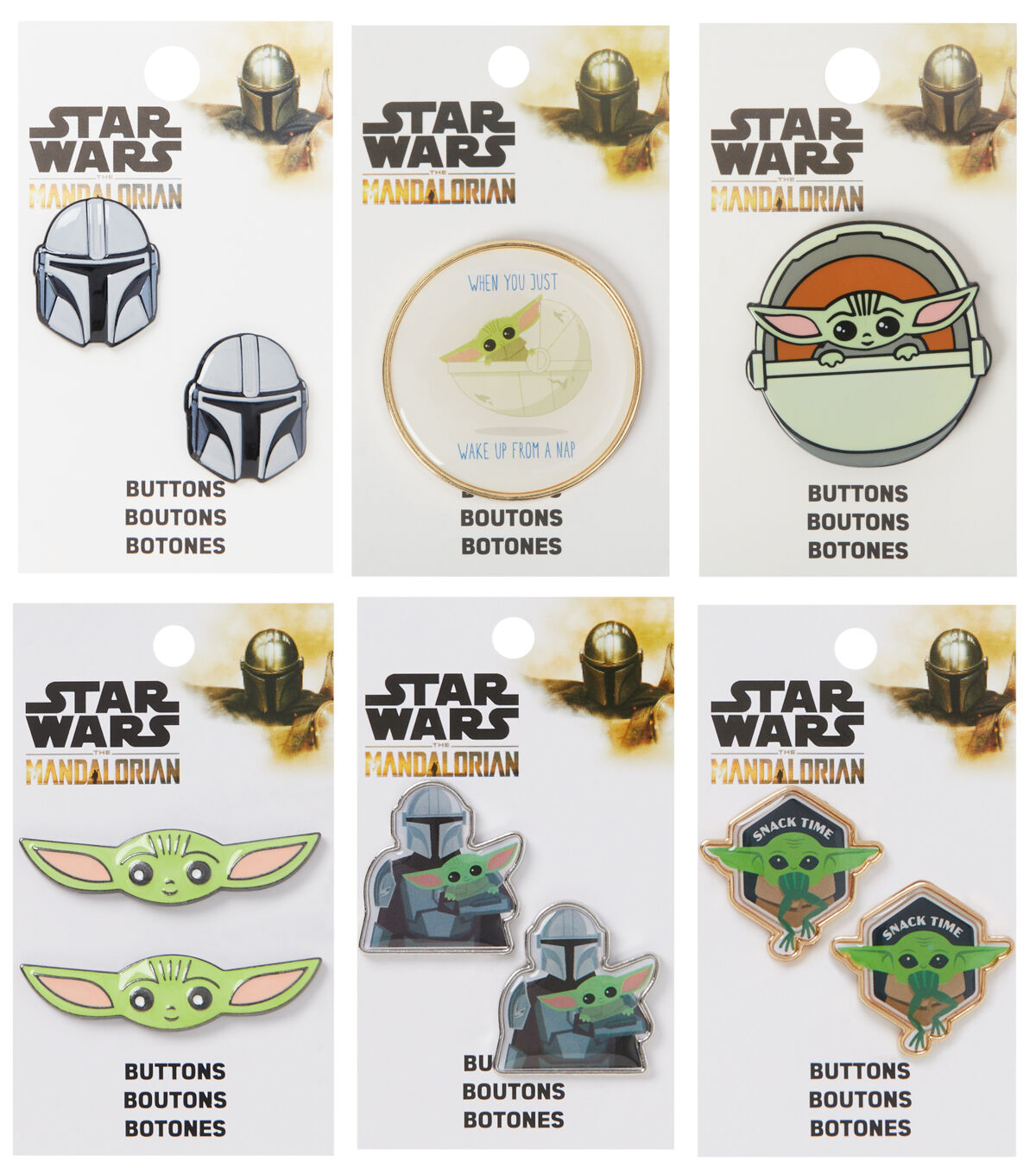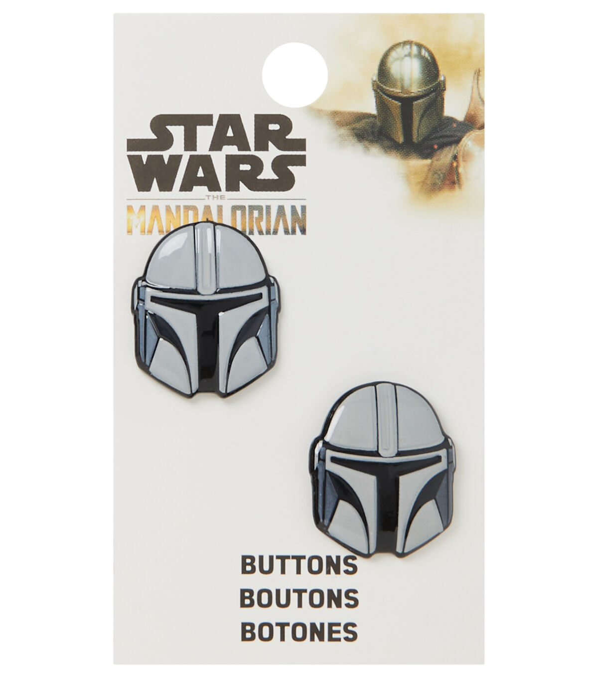 Sew the Blumenthal Lansing Star Wars the Mandalorian Enamel Buttons - Multi onto a plain tee or a hat and gift that to a ‘Star Wars’ fan. This pack includes two buttons that are intricately shaped like the Mandalorian helmet. You can also use them to accentuate off-the-rack kids’ clothing,tote bags and more.