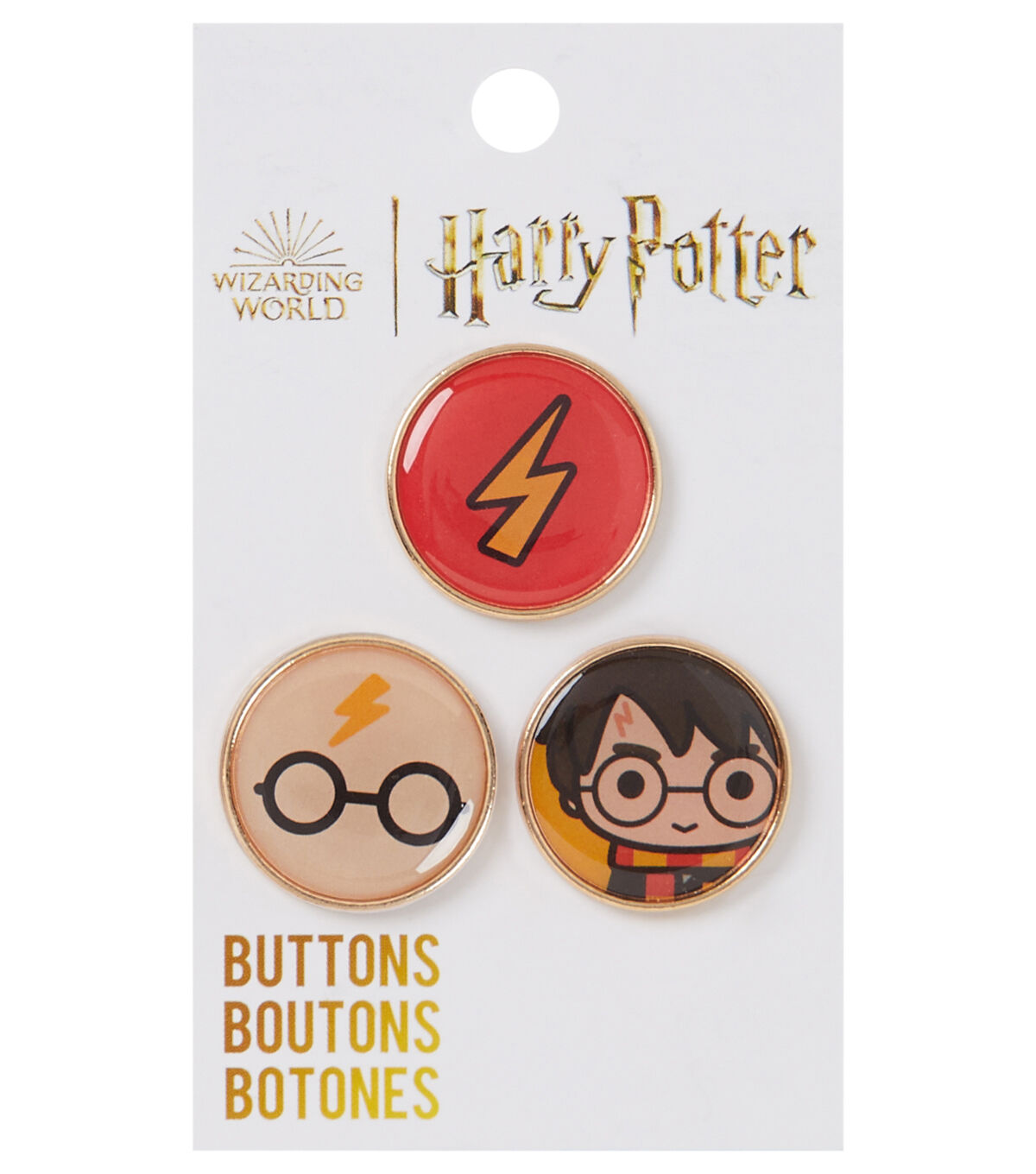 The Blumenthal Lansing Harry Potter Epoxy Buttons - Multi is just what you need to perk up your ‘Harry Potter’ fandom costumes. These smooth round buttons display icons like a lightning bolt scar,a pair of iconic spectacles and the scar and a mini Harry Potter in chibi design. They can be added to handmade sweaters and jackets. You can also use them to decorate bags and backpacks.