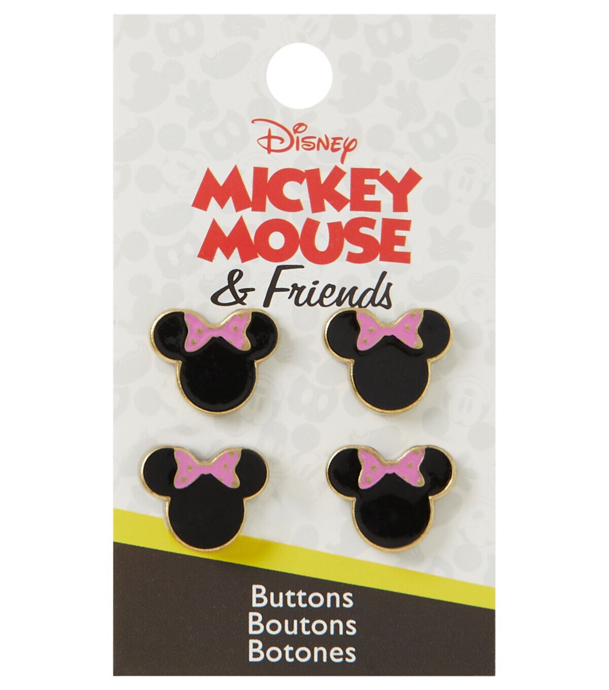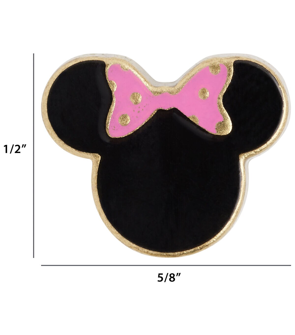 The Blumenthal Lansing Enamel Minnie Head Shank Buttons - Black will be perfect for designing kid's apparel. They are shaped like Minnie Mouse’s head and is completed with a ribbon bow on top that sports a pink hue. You can use these buttons to add visual charm to your handmade dresses,tops,jackets and more for a Minnie Mouse fan.