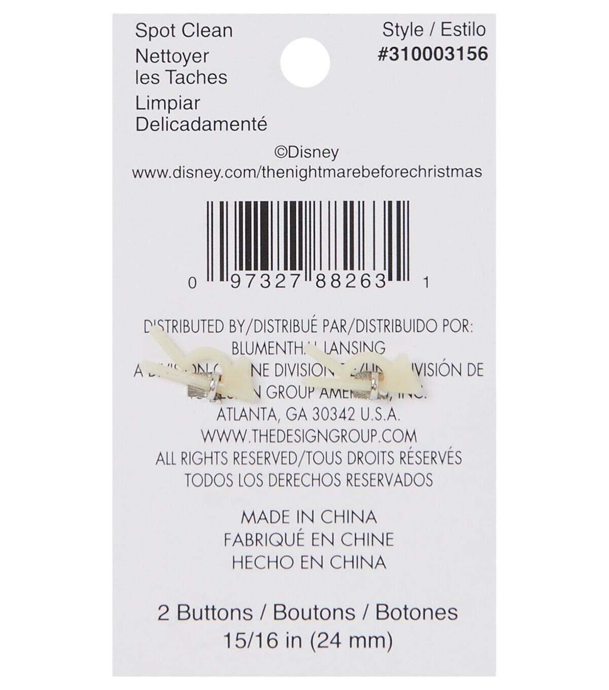Add a spooky vibe to your handmade home decor accents by sewing on the Blumenthal Lansing Shank Buttons - Queen of Screams & Sally. You can also use these buttons to decorate your Halloween costumes and accessories. They sport an image of Sally from the movie ‘The Nightmare Before Christmas’ along with the words ‘Queen of Screams.’