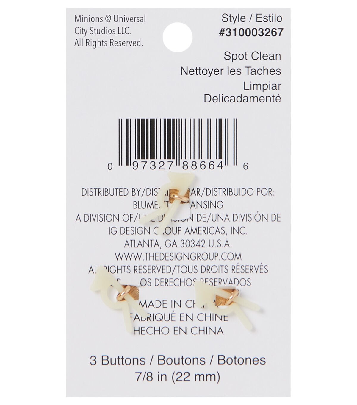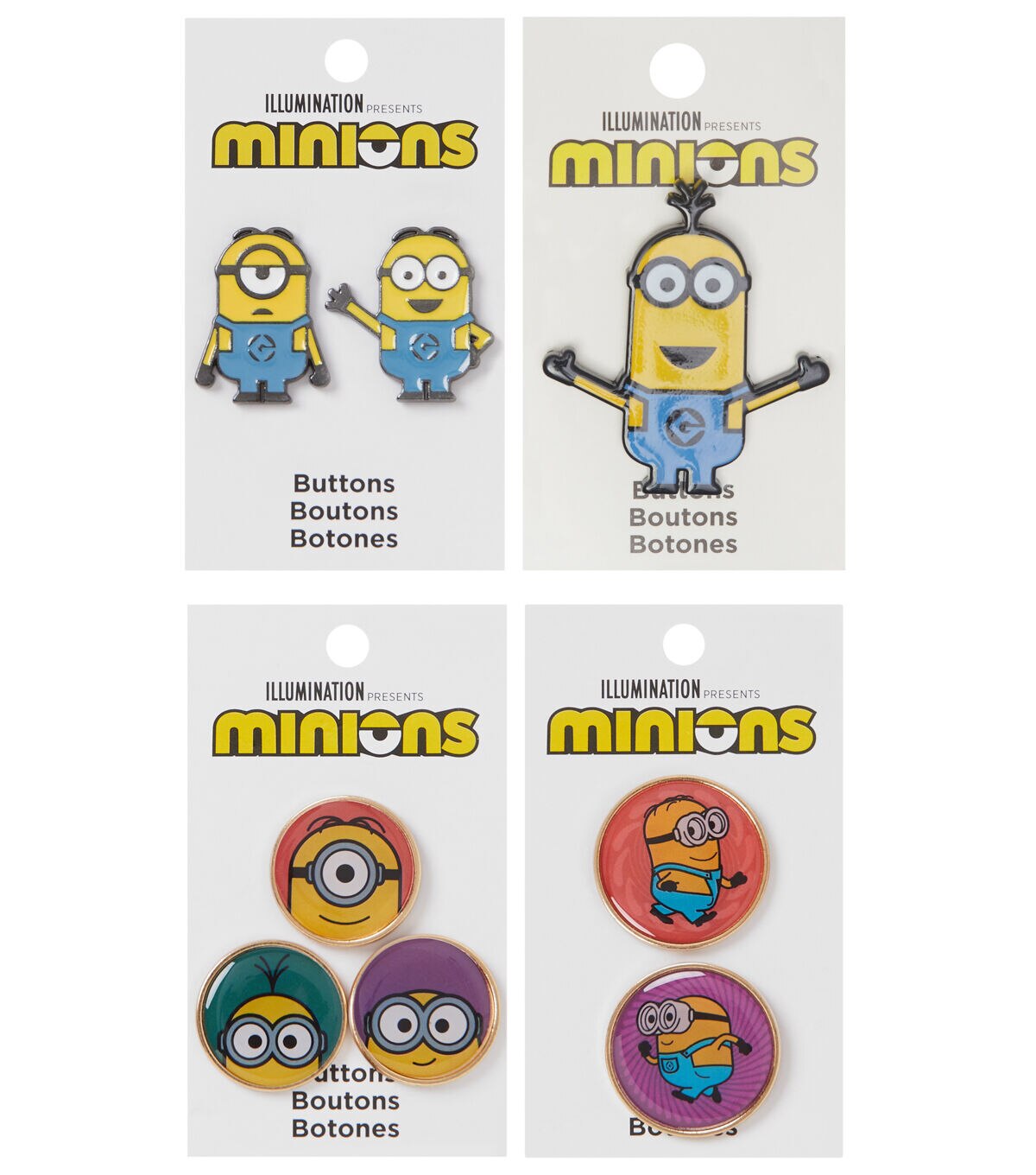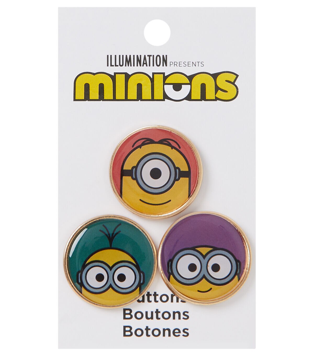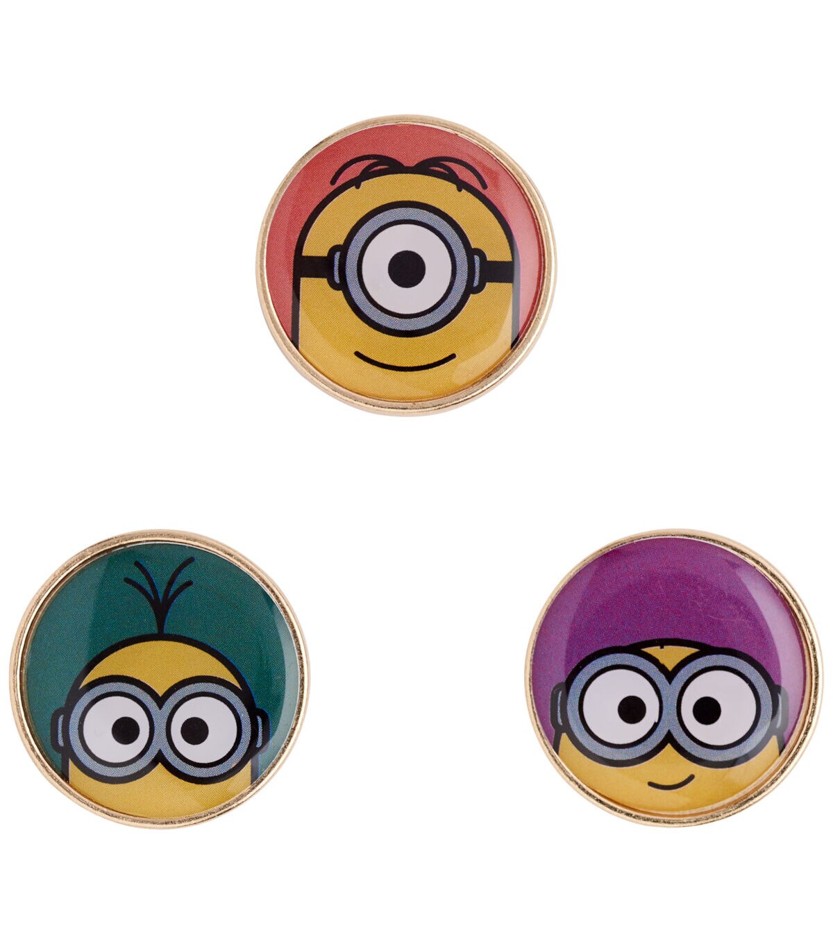 Add the Blumenthal Lansing Minions Epoxy Shank Buttons - Multi to your little one’s backpack and they are sure to be delighted. These epoxy buttons sport an image of a minion on each and they are designed with a gold-toned rim. You can also add them to a handmade tote, dress or skirt to add a fun touch.
