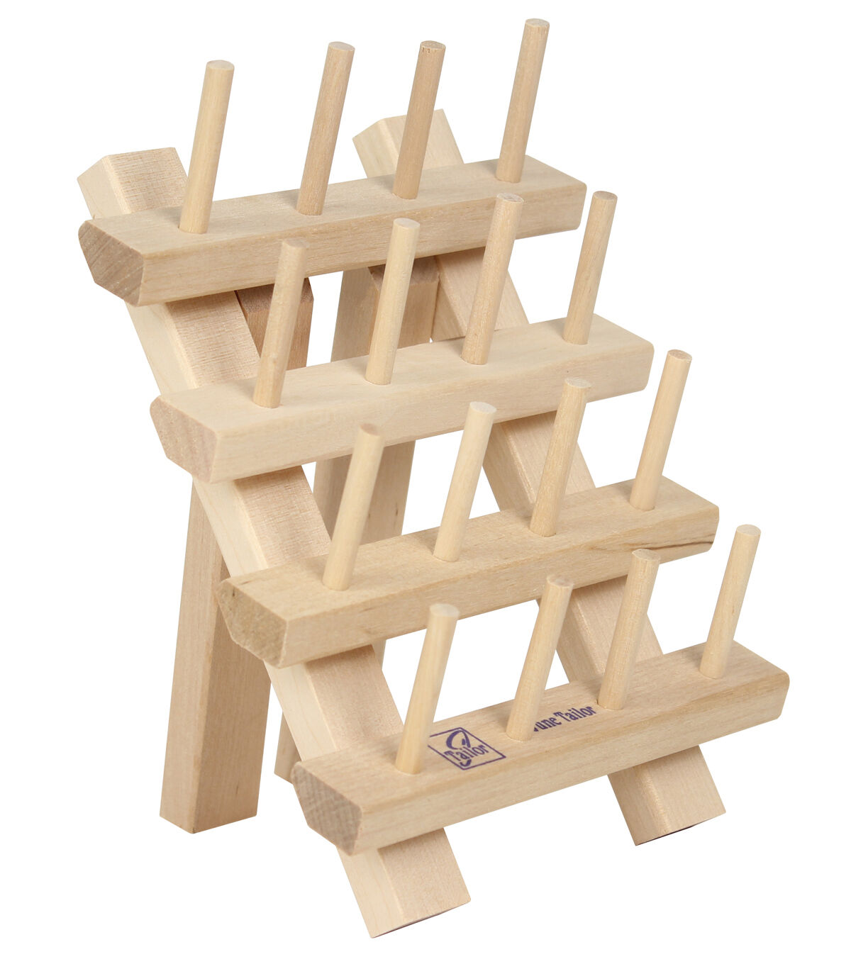 Flip out leg or keyhole slots for hanging. Quality hardwood construct ion. Holds 32 bobbins.