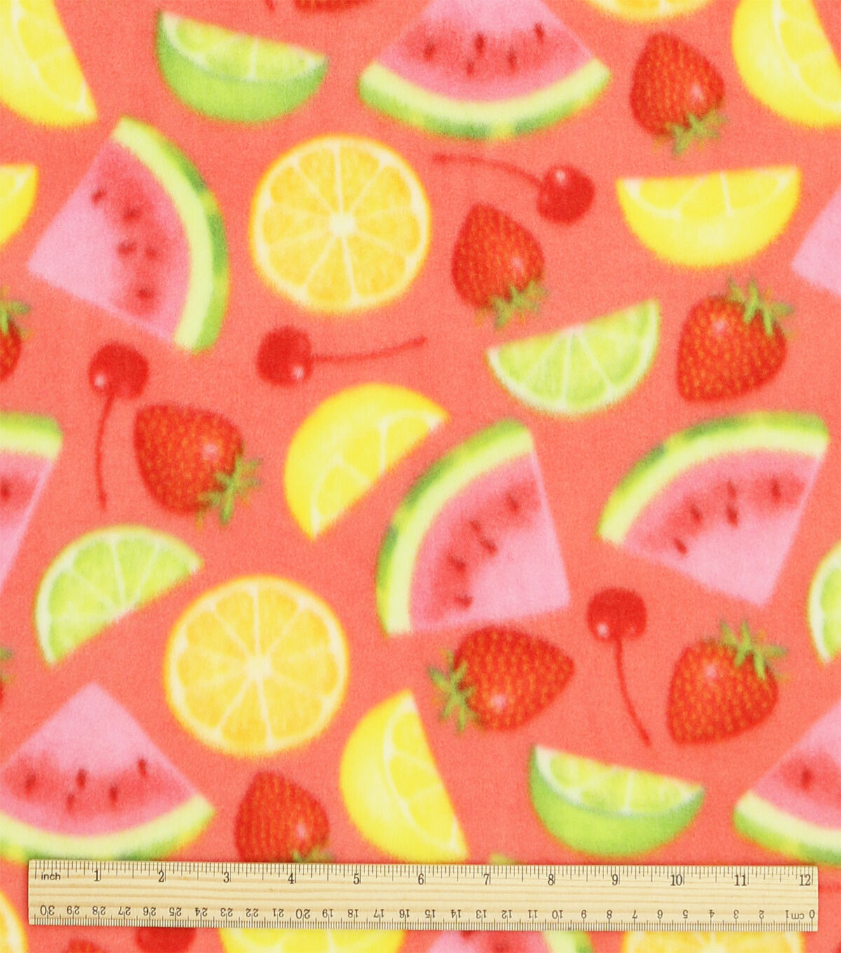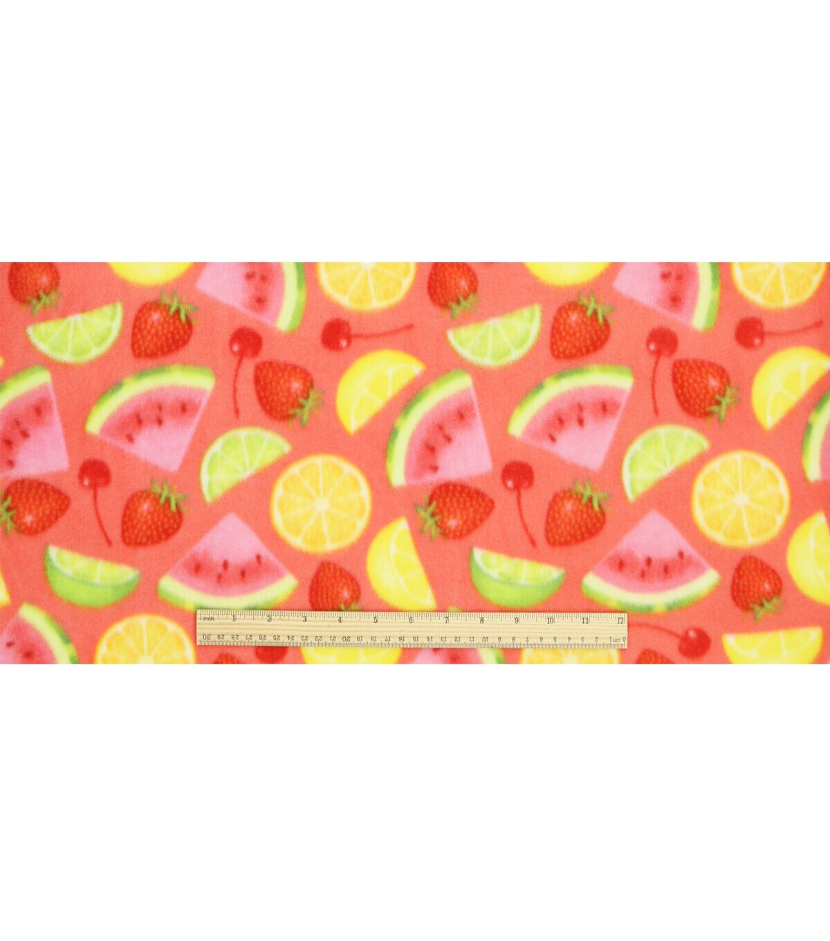 Experience the Bold Summer Mixed Fruit on Pink Anti Pill Plush Fleece Fabric