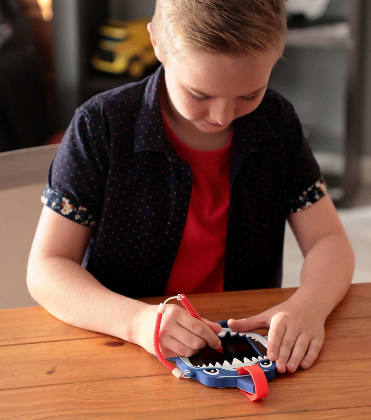 - Kids can doodle with anything, including the attached stylus or even their fingernail. With the push of Clark’s nose, the doodle board instantly clears itself. There are no erase marks or wiping needed!