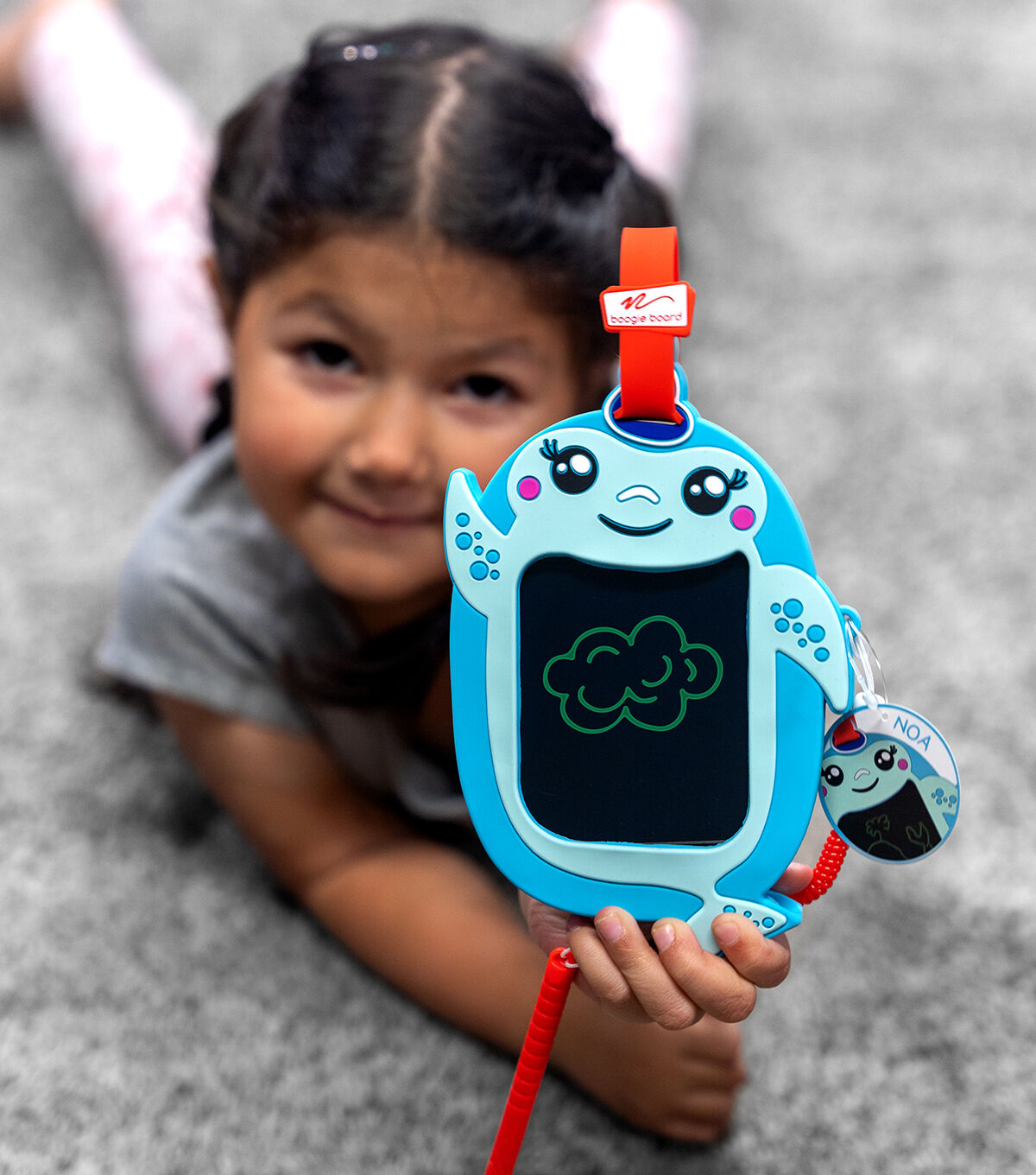 - Kids can doodle with anything, including the attached stylus or even their fingernail. With the push of Noa’s nose, the doodle board instantly clears itself. There are no erase marks or wiping needed!