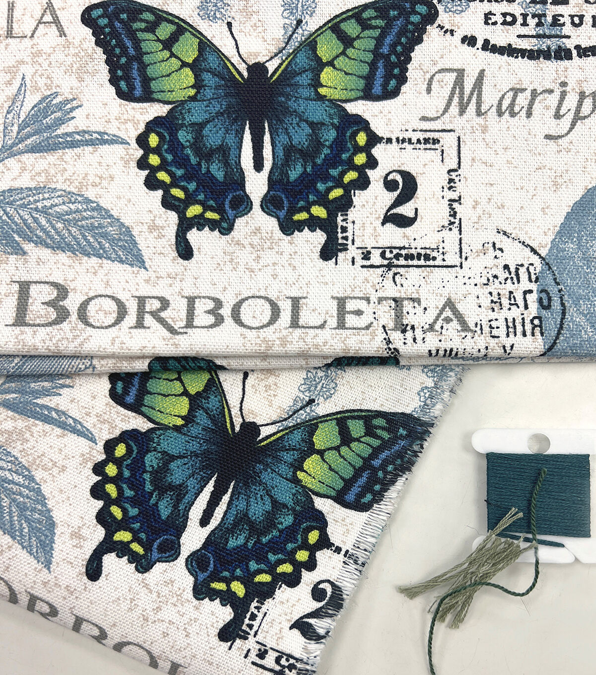 • Borboleta Indigo Cotton Canvas Home Decor Fabric