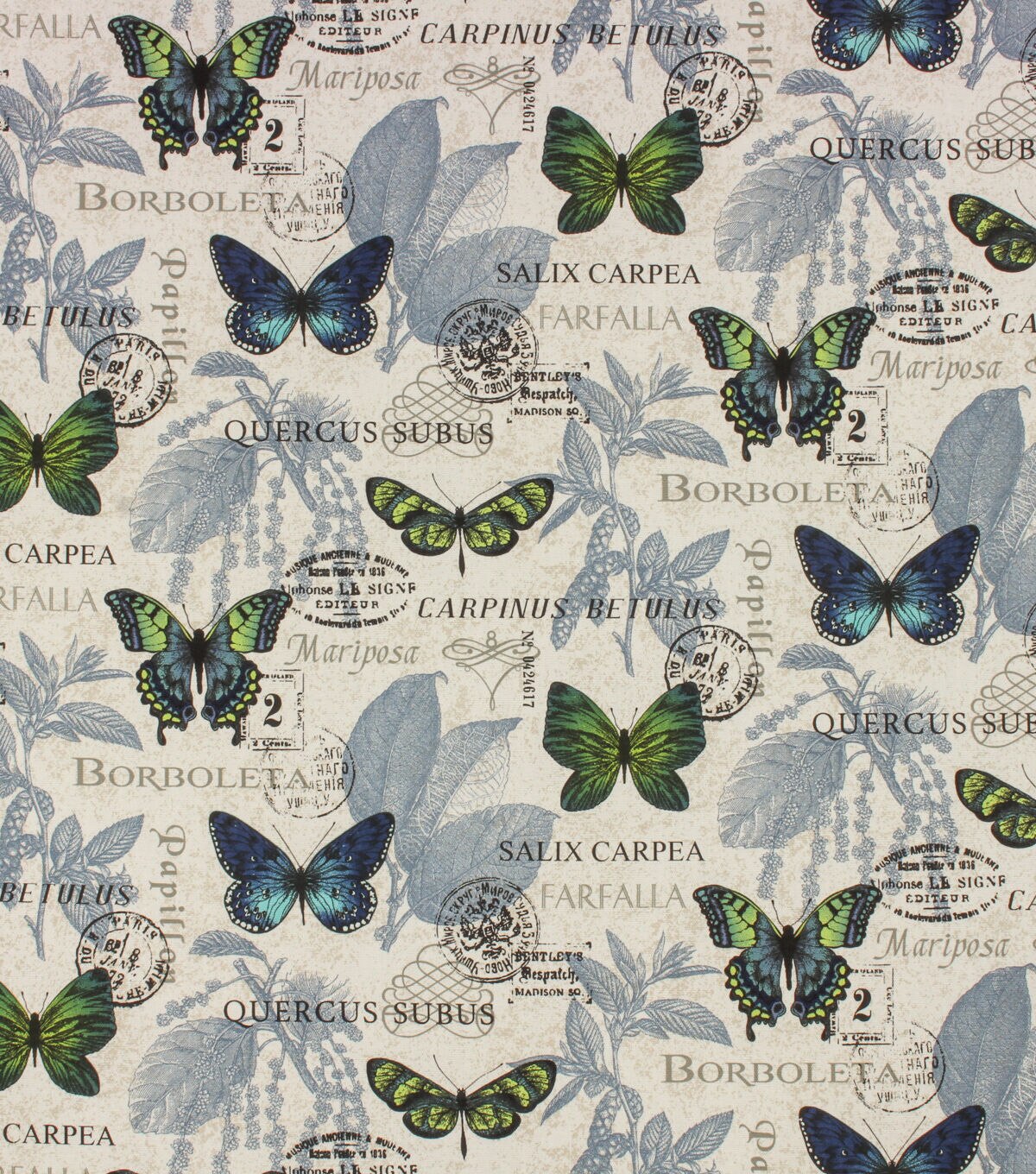 Borboleta Indigo Cotton Canvas Home Decor Fabric