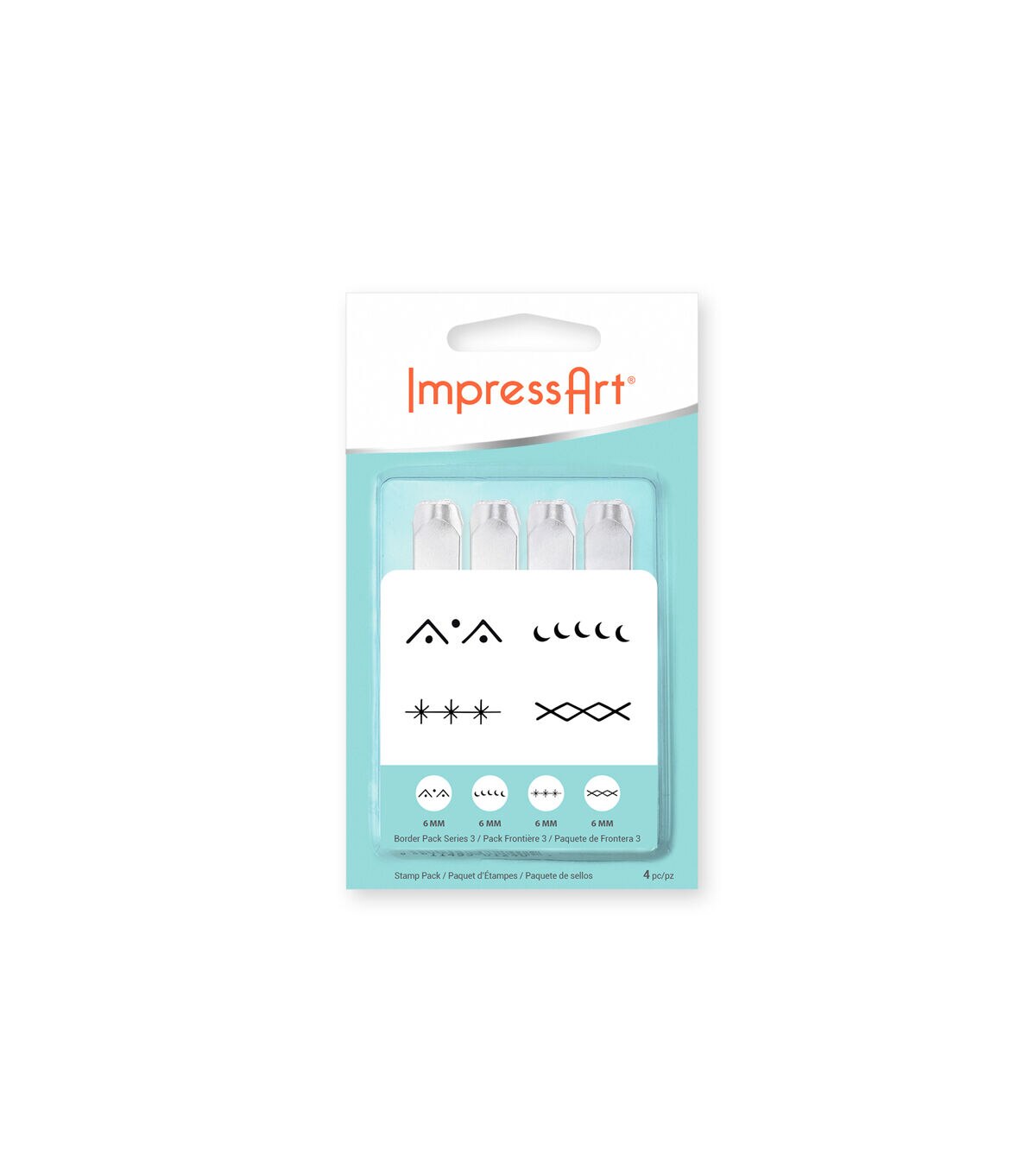 Add an extra touch of personalization to any hand-stamped piece with ImpressArt’s extensive selection of detail rich Design Stamps. These professional quality stamps are manufactured to the highest standard for durability and alignment. Designs are precision-cut from carbon tool steel, hardened to last project after project. The stamp has an oil-free finish to protect against rust, and the side of the stamp is labeled with the design for easy identification. Includes: Star Border, 6mm Intersecting Lines Border, 6mm Curved Line Border, 6mm Triangle & Dot Border, 6mm