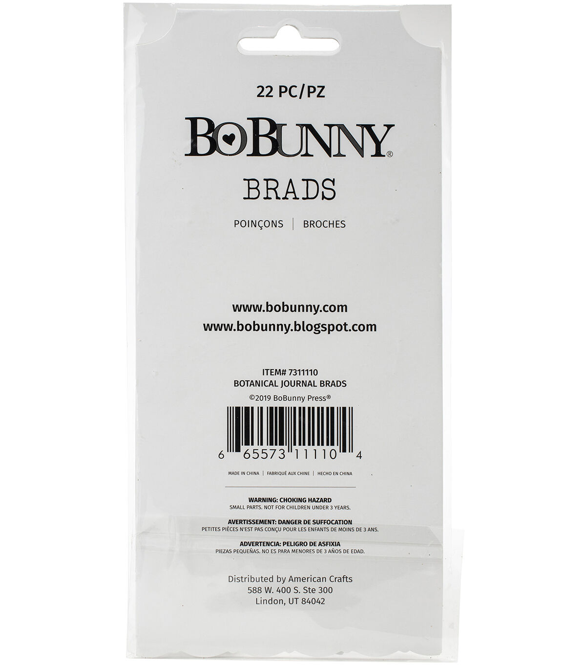 The Bo Bunny Botanical Journal Brads will take your papercrafting and scrapbooking projects to the next level. This pack contains 22 assorted brads on one 3.75 x 8-inch sheet. These brads sport multicolored hues and will be perfect for spring-themed projects.