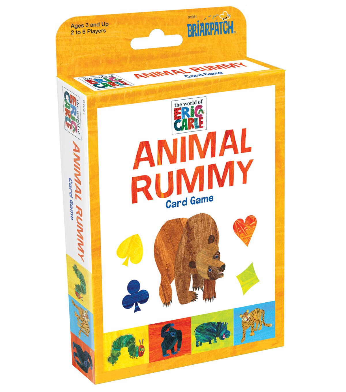 The Briarpatch Eric Carle Animal Rummy Card Game is an educational card game series for preschoolers. It features alphabet, counting, colors and animals, all wrapped in easy-to-learn classic card games. Based on the Eric Carle Book Series. This game is ideal for ages three and up, and two to four players.