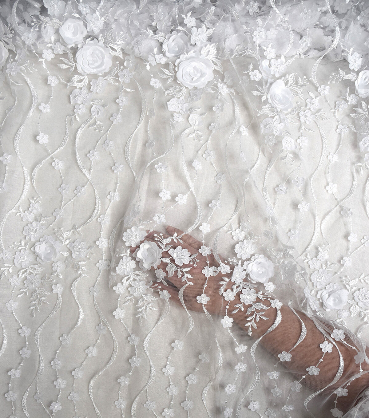 Bridal 3D Floral Vine Mesh Fabric
