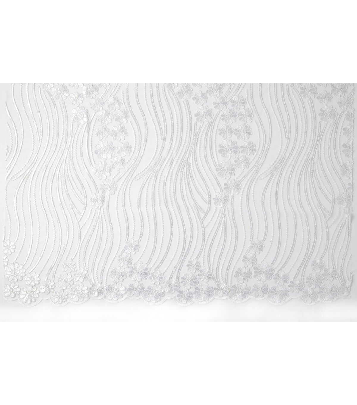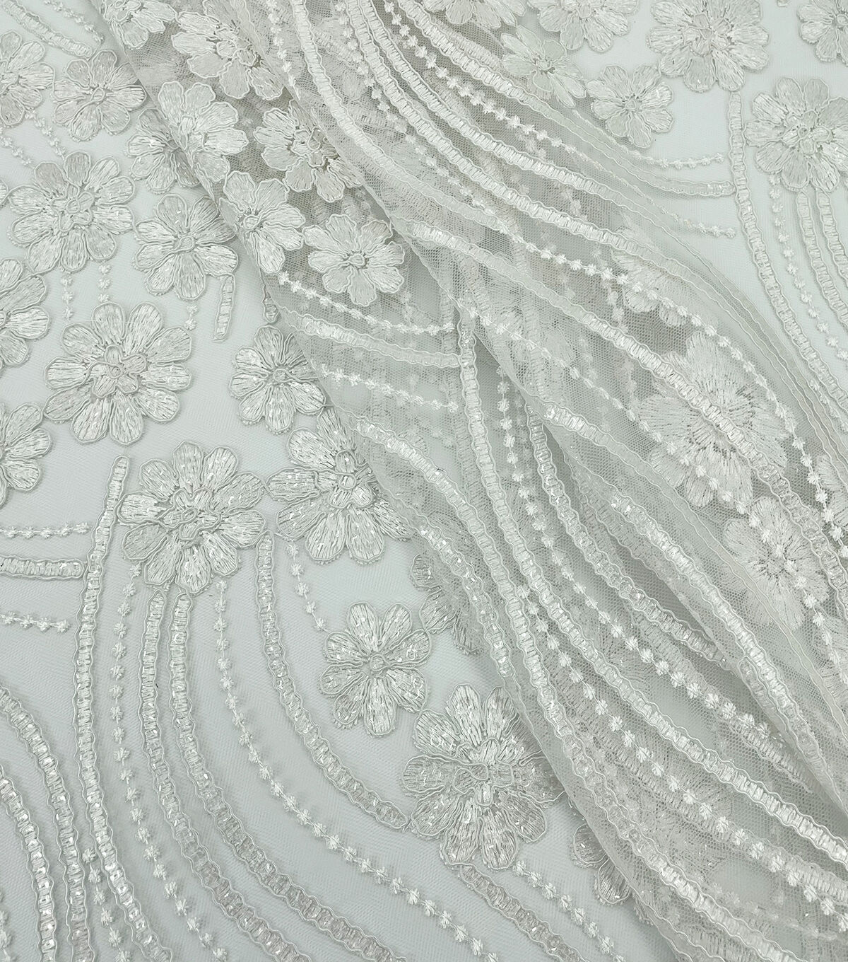 Our floral and sequin embroidery fabric is a sparkly chic impact on wedding apparel. Made of 100% Polyester, this material is durable and breathable so you don't have to worry about any wardrobe malfunctions and simply look your beautiful best. It's all eyes on you for the big day, and our bridal fabrics are here for you to stun the crowd.