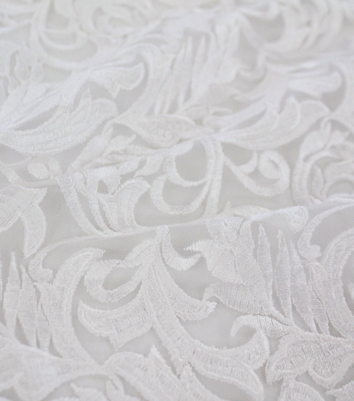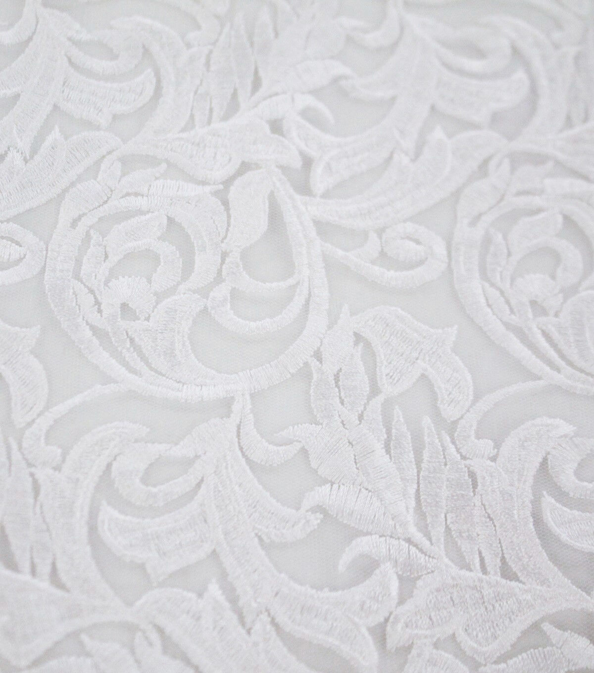 Our embroidered fabric adds a layer of flowy design to any wedding attire. Made of 100% nylon, this material is form fitting with extra stretch so you have apparel that compliments your shape to simply look your beautiful best. It's all eyes on you for the big day, and our bridal fabrics are here for you to stun the crowd.