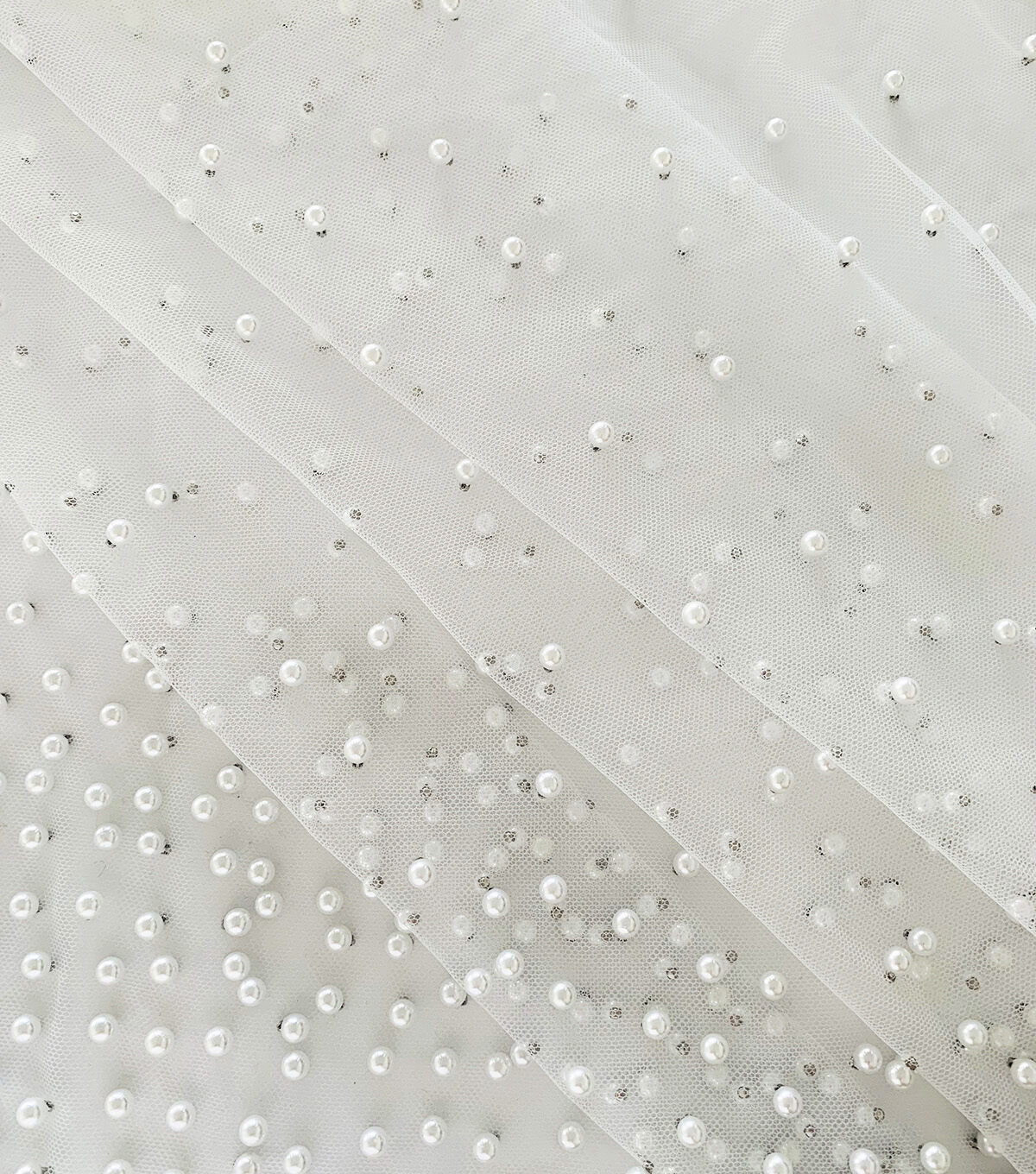 • Bridal White Mesh With All Over Pearls Bridal Collections Fabric