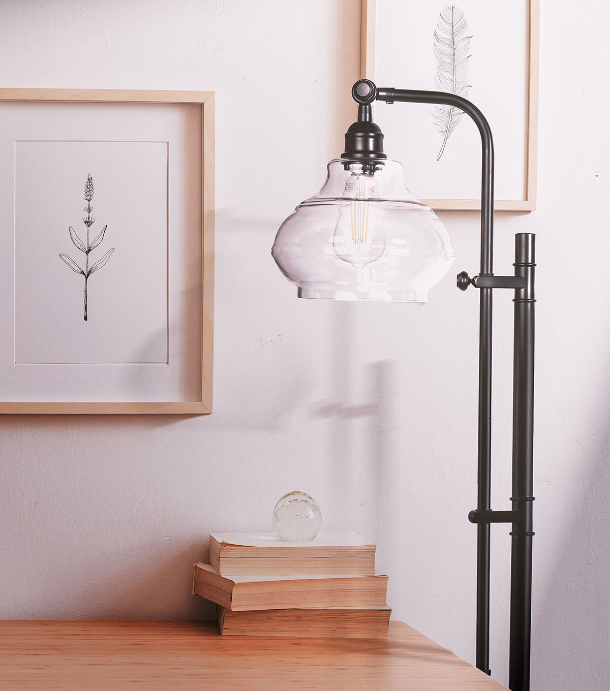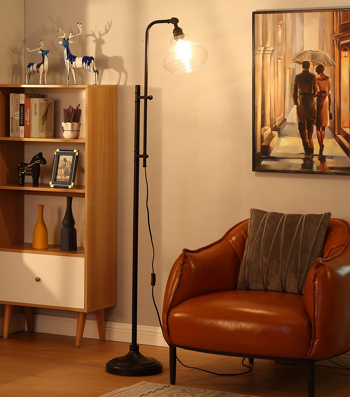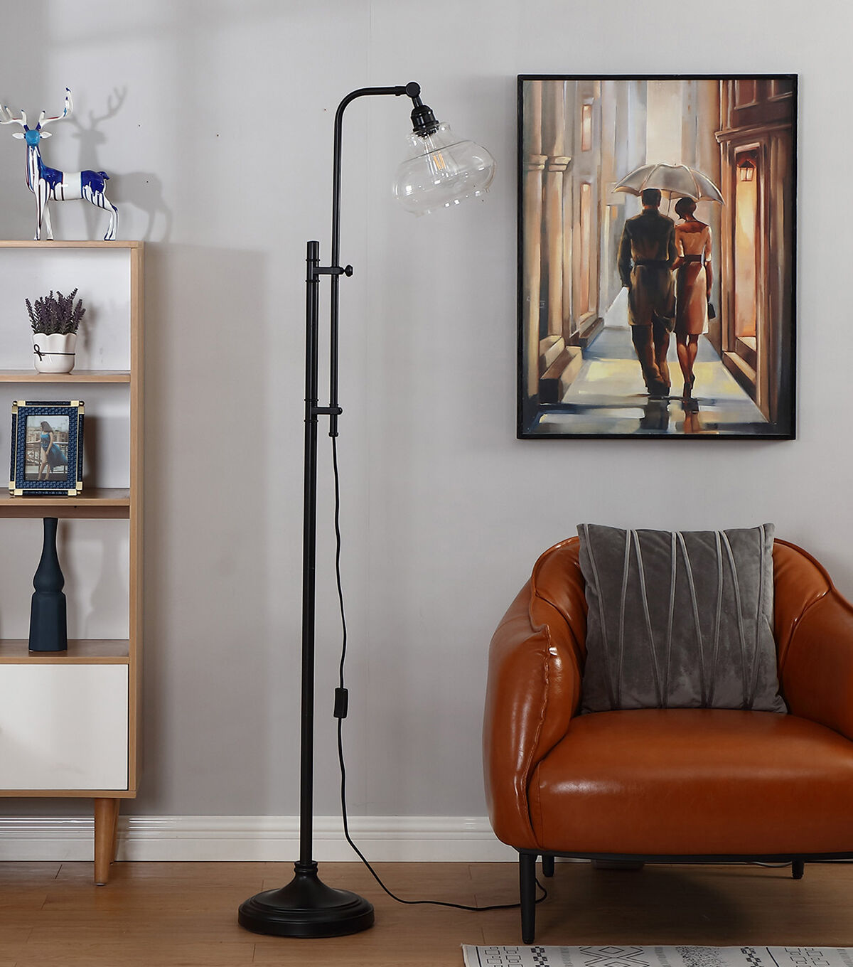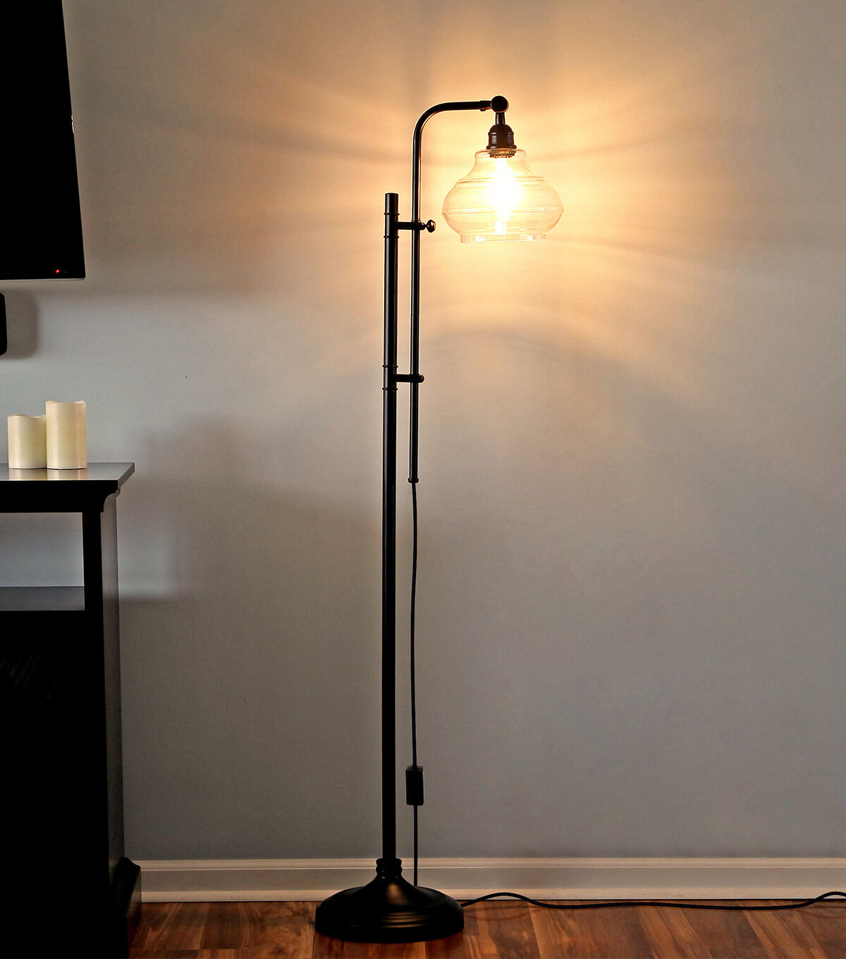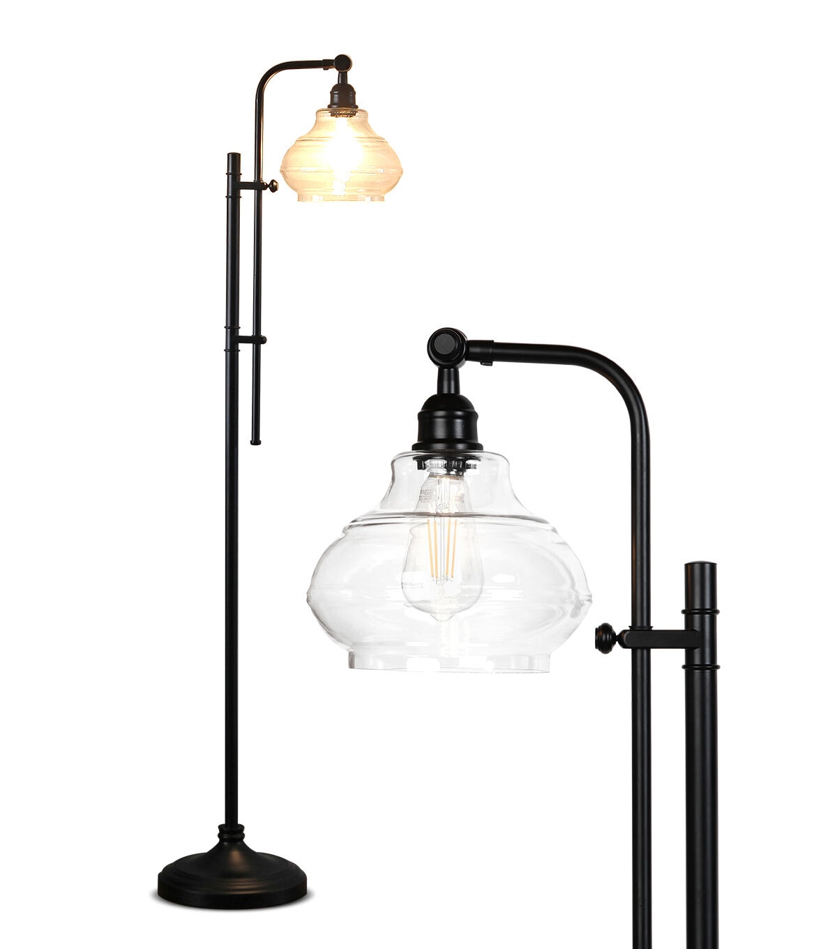 A unique vintage floor lamp that will add a classical touch to your living room. With its sleek, detailed black base and stem, hanging glass shade, and adjustable pole, Brightech's Austin Floor Lamp adds just the right amount of ambiance and style to any space. Enjoy warm, cozy reading light that creates a comfortable space beside your book chair, a great alternative to unpleasant overhead lights. Conveniently compatible with Alexa, Google Home Assistant, and Apple HomeKit, when purchased with a Smart Plug (sold separately).
