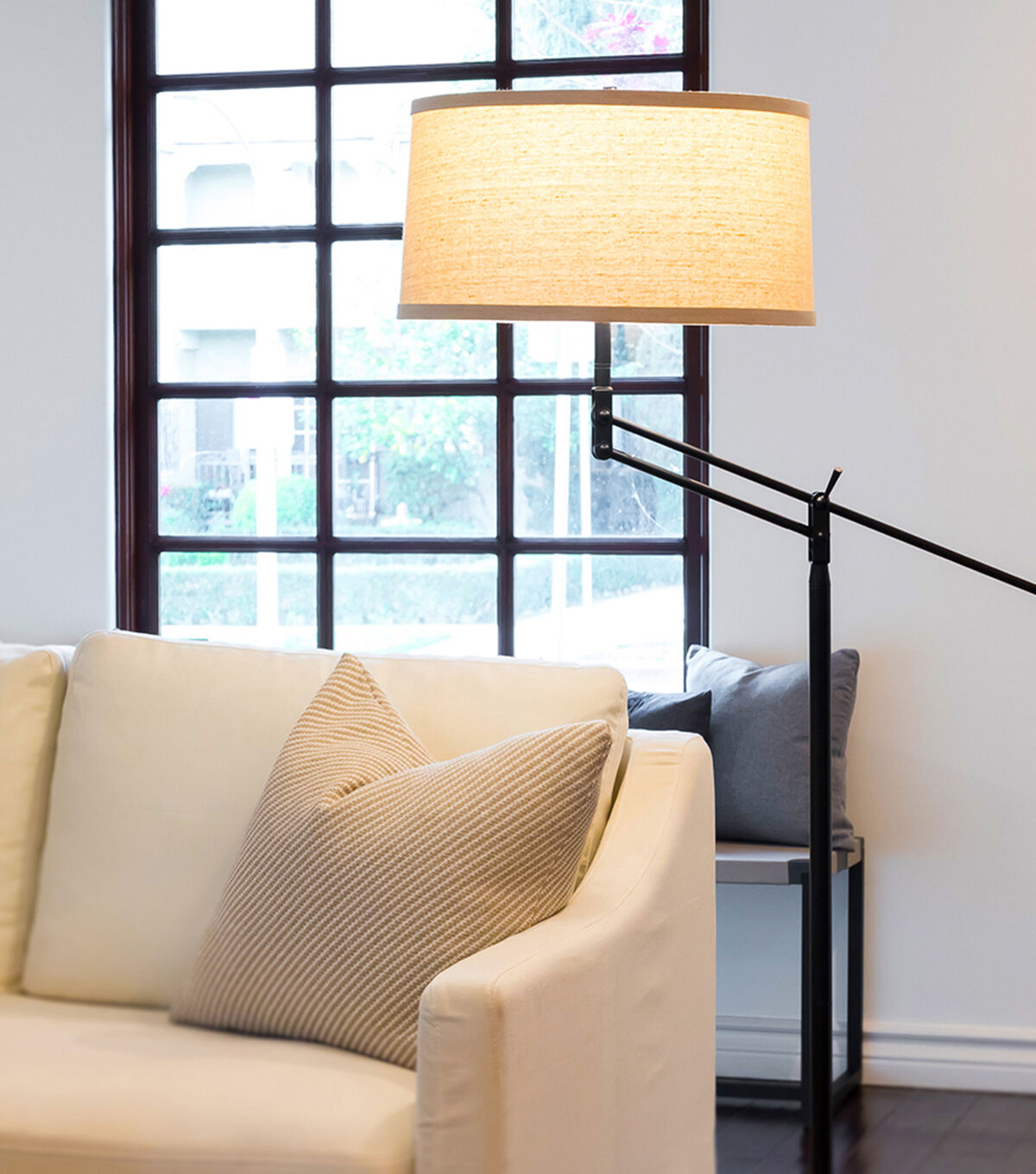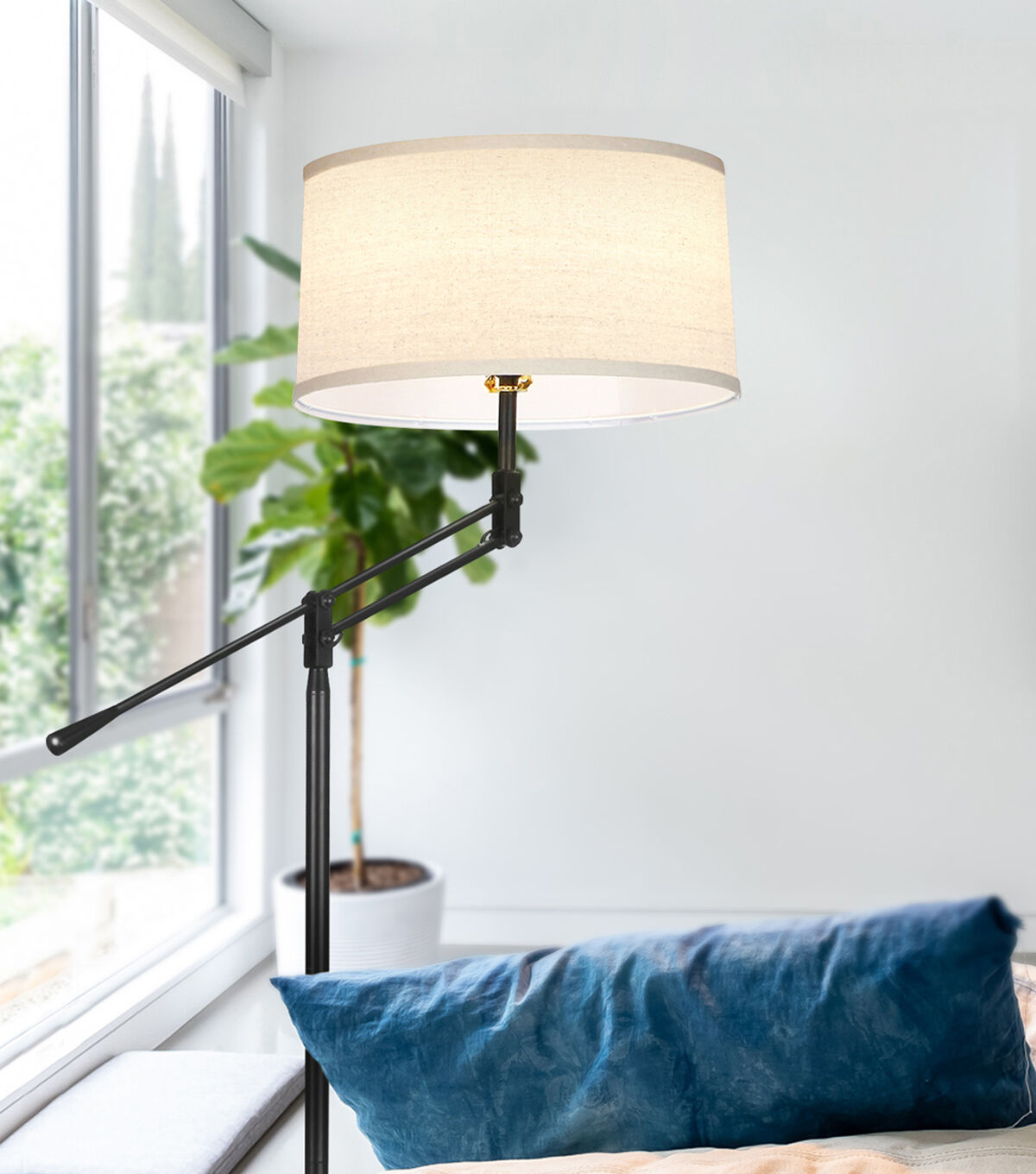 Brightech's Ava is one of the most stylish and versatile lamps on the market. Position Ava's light behind a couch or armchair and have friends start conversations on the stylish two-tone design and practical height adjusting arm. Brightech's Ava allows you to adjust the height of this lamp up to a maximum of 5 feet tall. The arm has an outer reach of about 1 foot from the pole, and the adjustable hinge allows the lampshade to be positioned to any height between 45 inches and 61 inches from the ground. Perfect for reading, knitting, cross-stitching and other hobbies. Conveniently compatible with Alexa, Google Home Assistant, and Apple HomeKit, when purchased with a Smart Plug (sold separately).