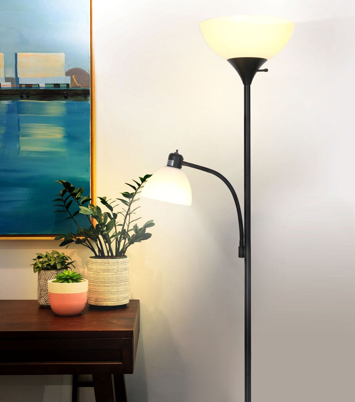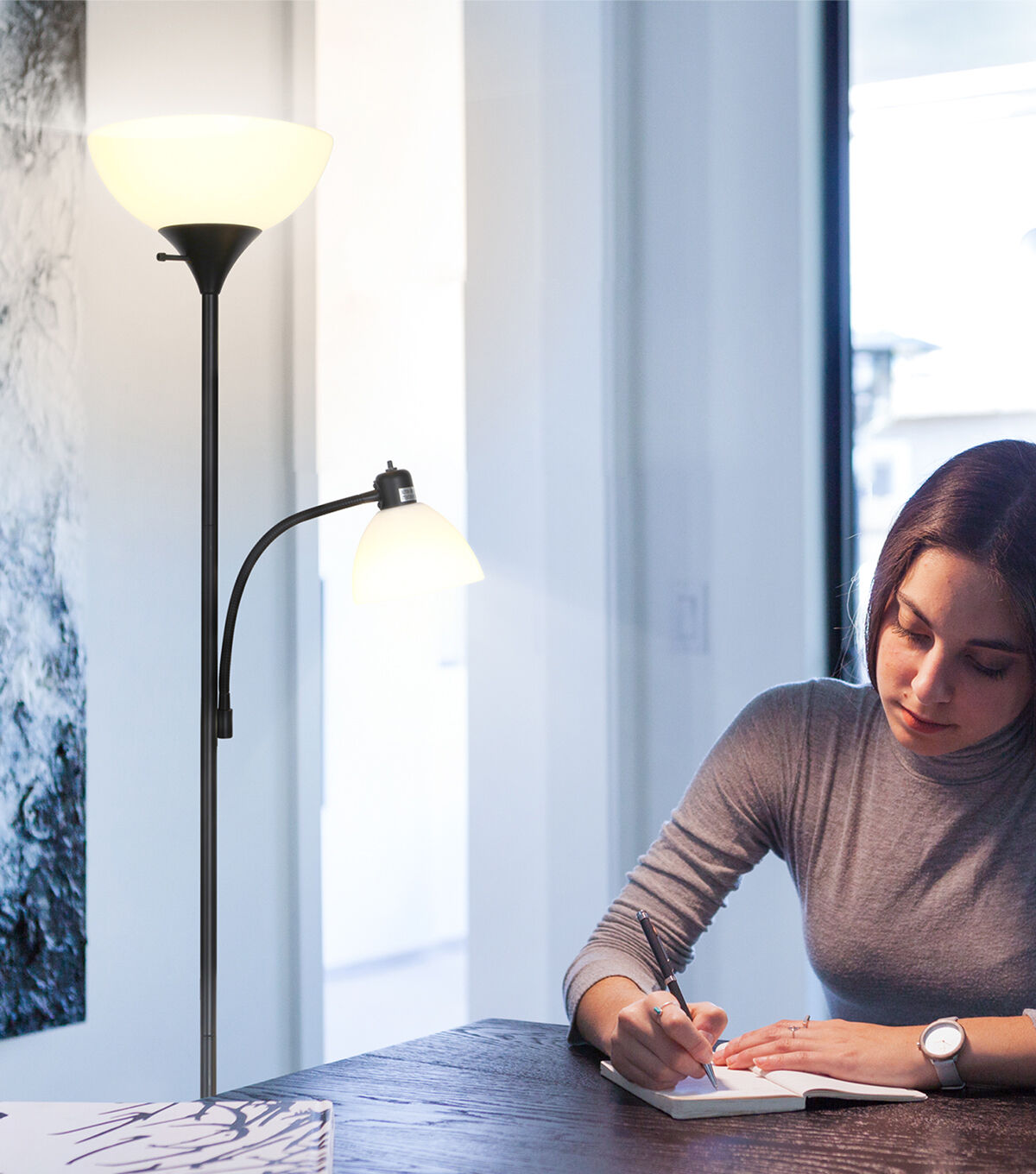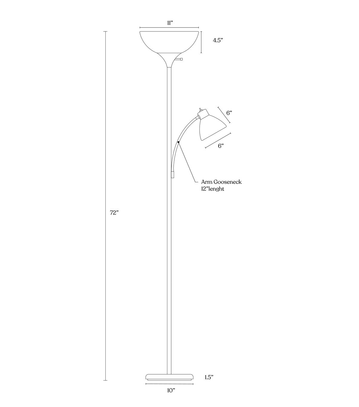 Brightech's LED Sky Dome Plus is perfect for any room! Featuring 2400-Lumens, Brightech's Sky Dome Plus is enough to light a large room! This pole lamp stands 72" tall, featuring a sturdy base, a dome lamp shade 11" in diameter, a side dome lamp with 12" gooseneck arms, and a 3-way bulb and built-in dimmer for soft light to optimize the mood. This slender lamp slides unobtrusively into narrow corners, and the base fits beneath your sofa. Brightech Sky's unique design matches modern, minimalist, urban, casual, and contemporary décor, perfect for your bedroom, office, or study.