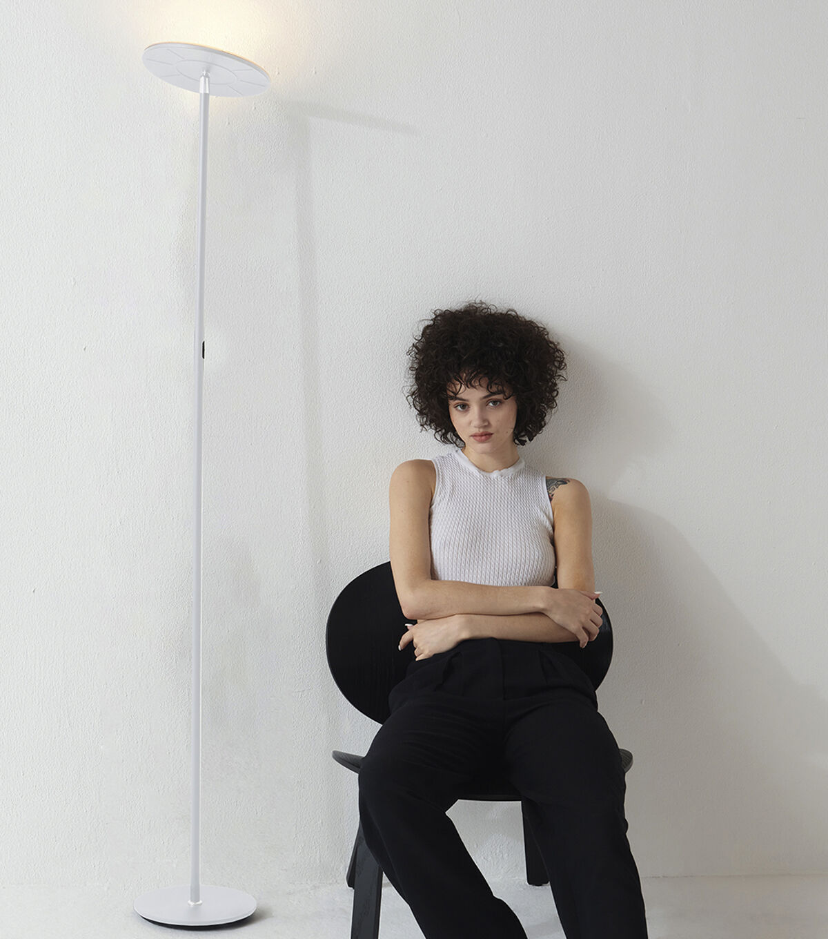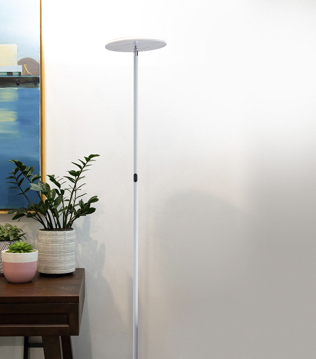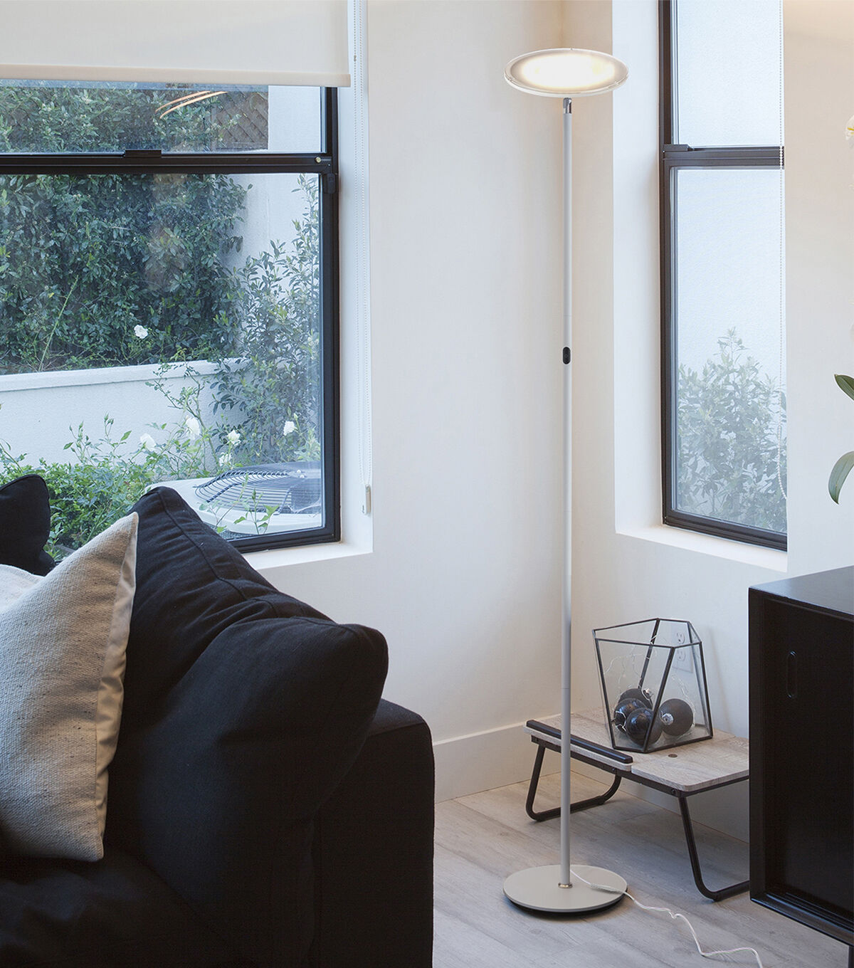 One of our most popular lamps, Brightech's Sky LED Torchiere Floor Lamp, is perfect for any room with its' integrated LED light that pivots and shines light in any direction you need. With 2190-Lumens, Brightech's Sky is enough to light a large room! This pole lamp stands 63" tall, featuring a sturdy base and a built-in three-way dimmer that remembers your brightness setting for the next time you turn it on. The unique design matches modern, minimalist, urban, casual, and contemporary décor, perfect for your bedroom, office, or study.