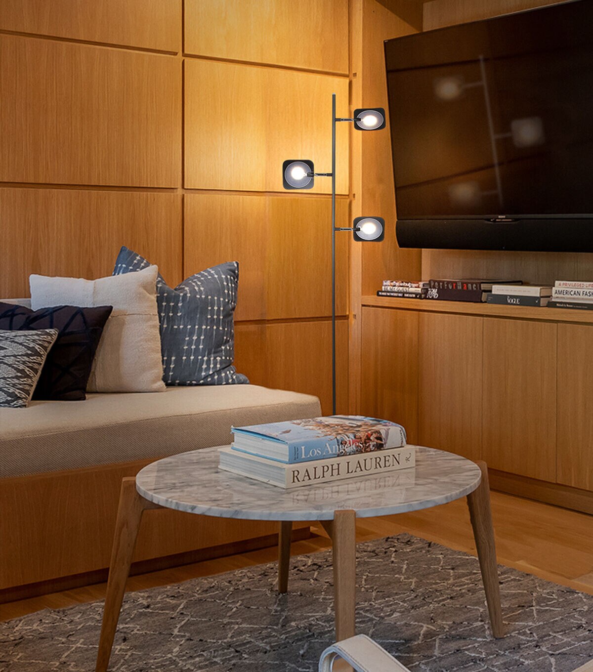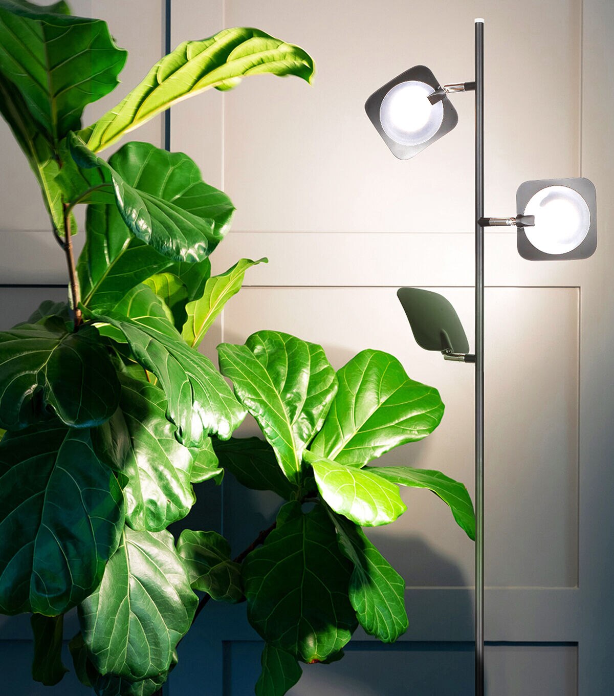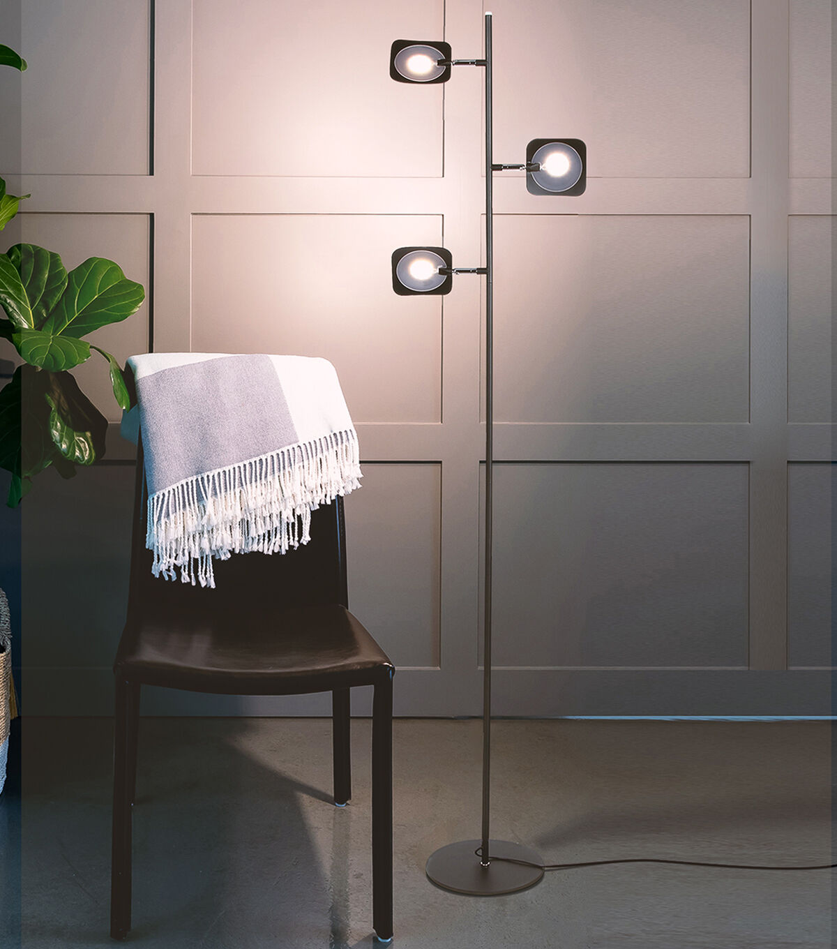 With a light blazing bright enough to be the only lighting source needed, Brightech's 1,856-Lumen Tree Floor Lamp is capable of both mood and task lighting for your bedroom, bathroom, living room, or office. Standing 60" tall, Brightech's Tree features omnidirectional LED lighting fixtures that pivot 360°, and a built-in dimmer to adjust brightness. Swing the panels down for reading and crafts or rotate up to reflect off the ceiling; the diffusers on the panels keep the light soft on the eyes and make for a relaxing ambiance. Use it as a searchlight, floodlight, corner lamp, or minimalist art piece; this is an excellent addition to any bedroom, office, or studio!