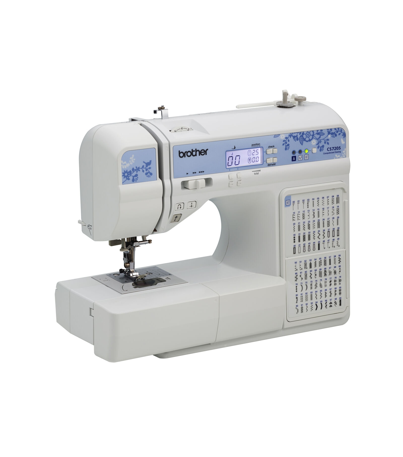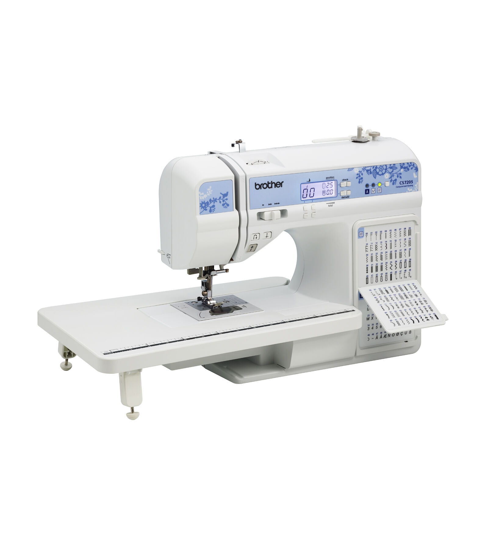 Make your sewing and quilting dreams a reality with the CS7205 computerized sewing machine from Brother! This machine allows you to view all the built-in stitches at a glance with the convenient flip chart. Choose from 150 decorative, quilting and utility stitches, plus a sewing lettering font with 55 alphanumeric stitches for basic monogramming. Also featured are large back-lit LCD display for easy viewing, even in low light, variable speed control, brightly lit workspace, drop feed dogs, automatic needle threader and much more! Packed with included accessories this machine is a great value with 11 included sewing/quilting feet and wide table.