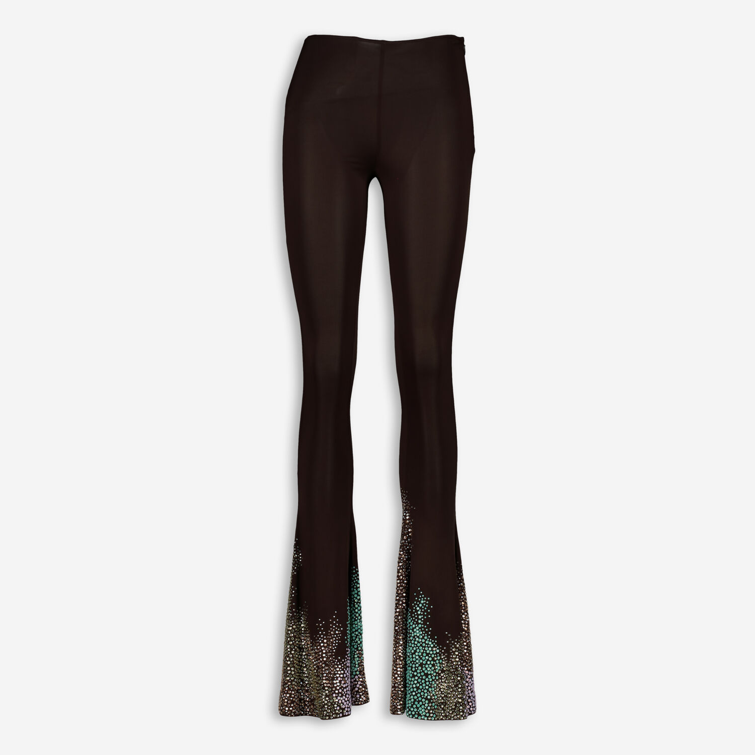 • Brown Flared Embellished Jersey Trousers