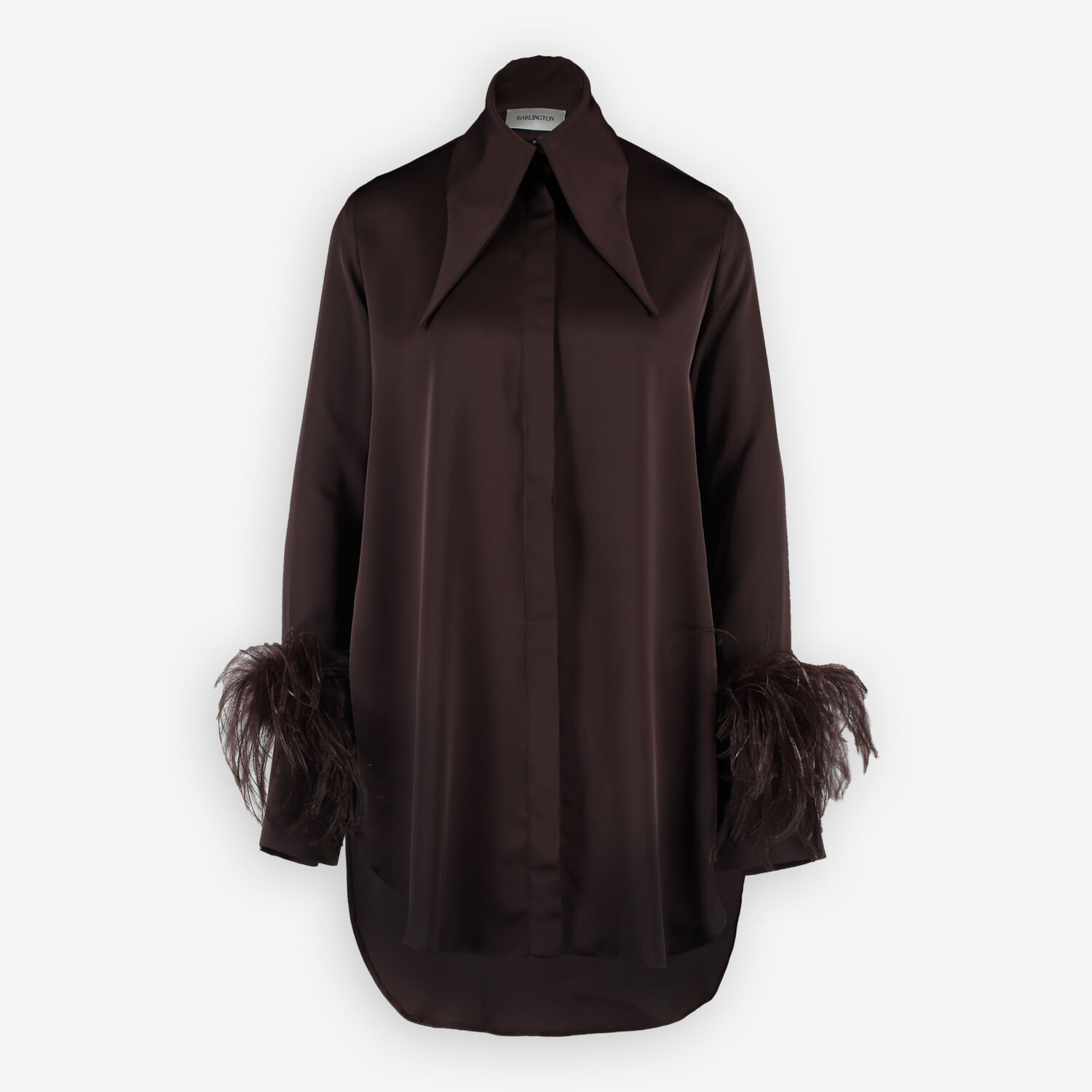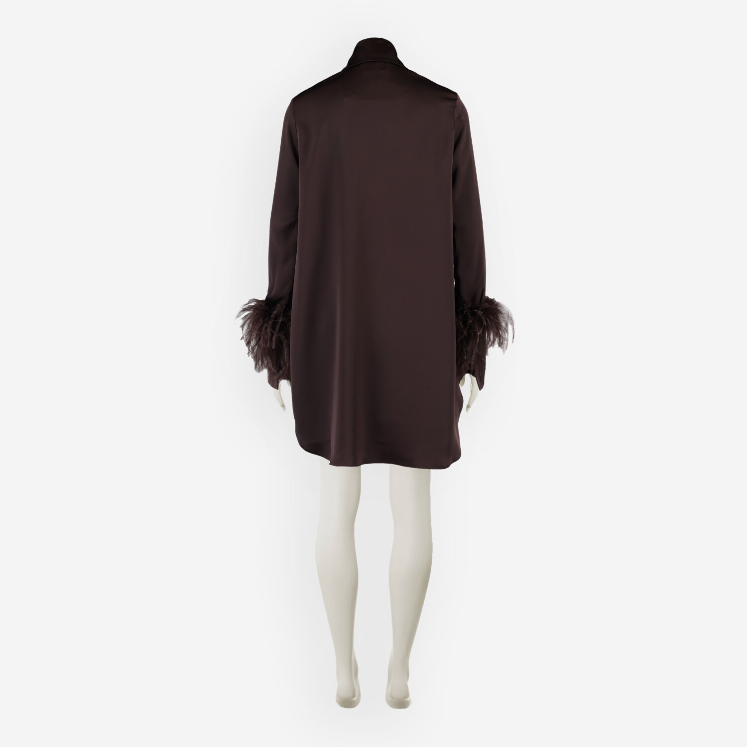 • Brown Satin Feather Cuff Shirt Dress