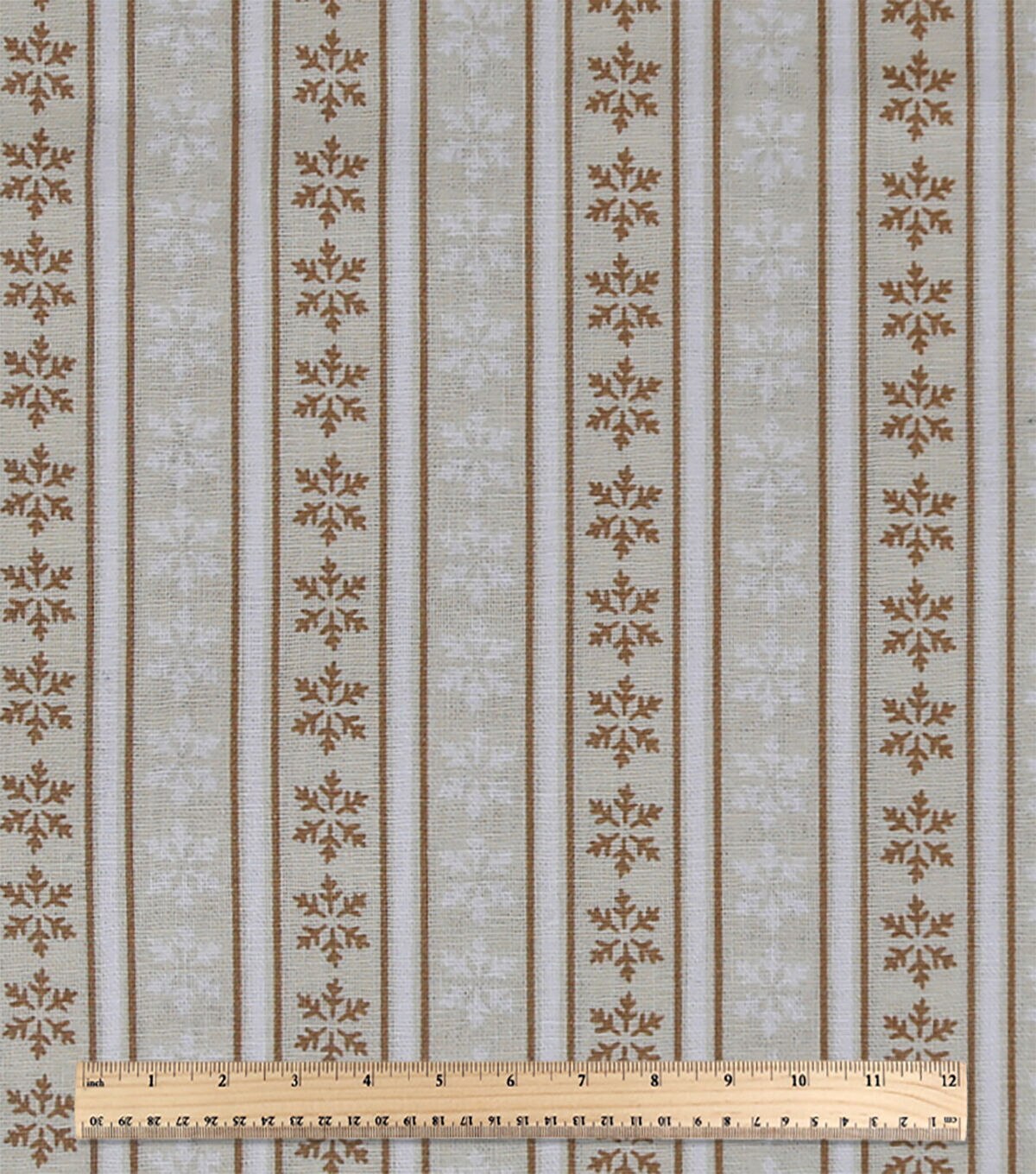 • Brown Snowflake Stripes on Gray Christmas Cotton Fabric