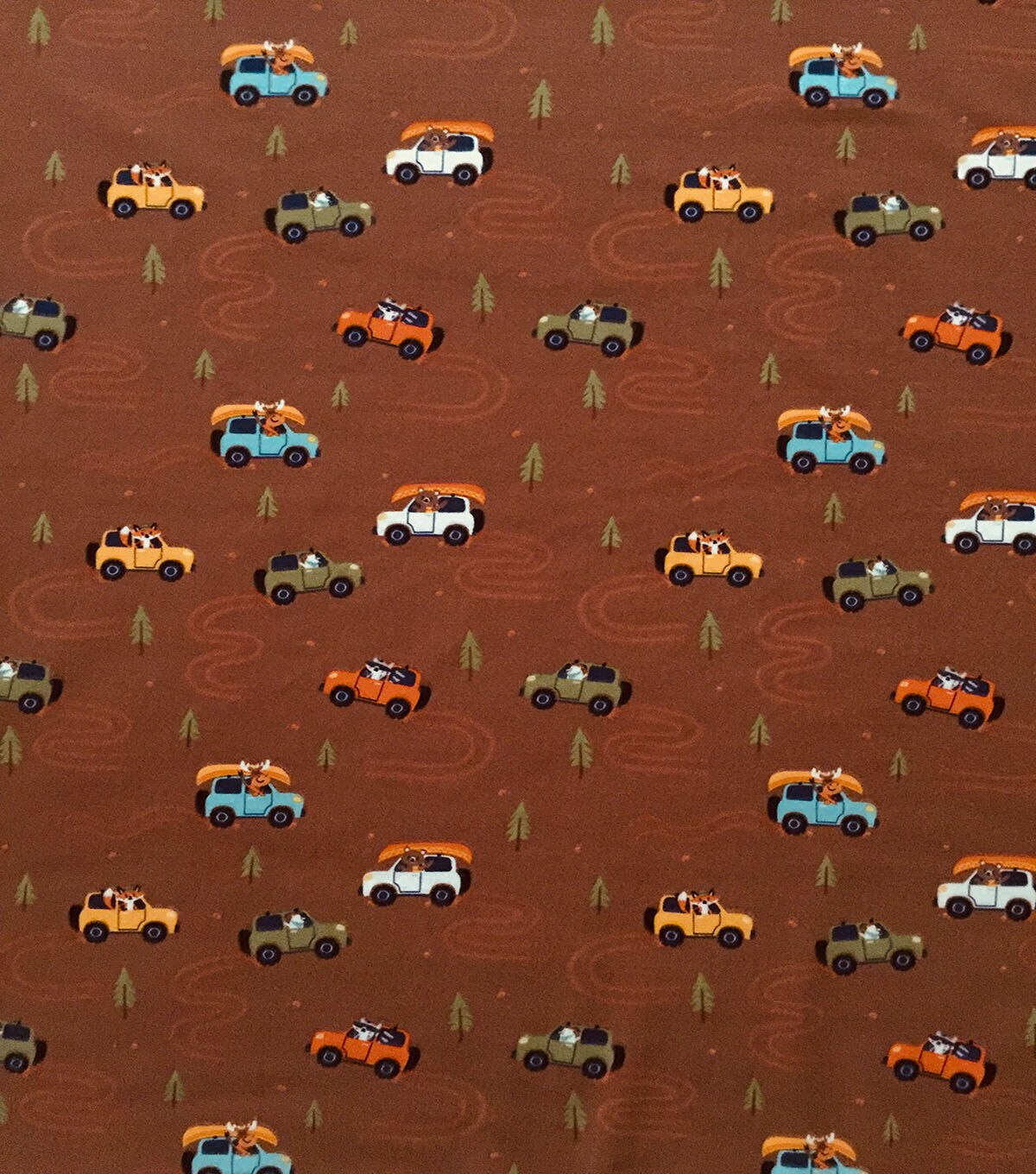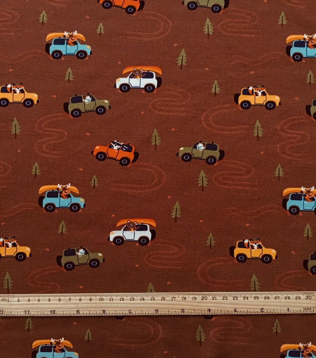 • Brown Truck Camping Interlock Knit Fabric by POP!