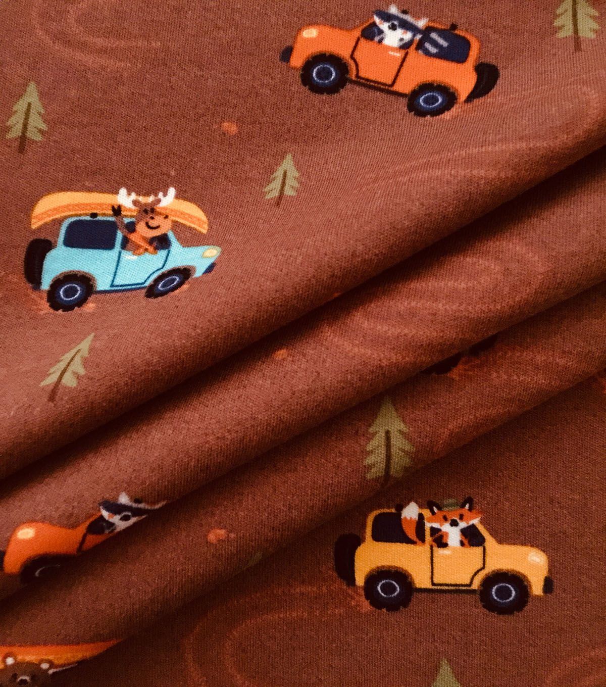 Brown Truck Camping Interlock Knit Fabric by POP!