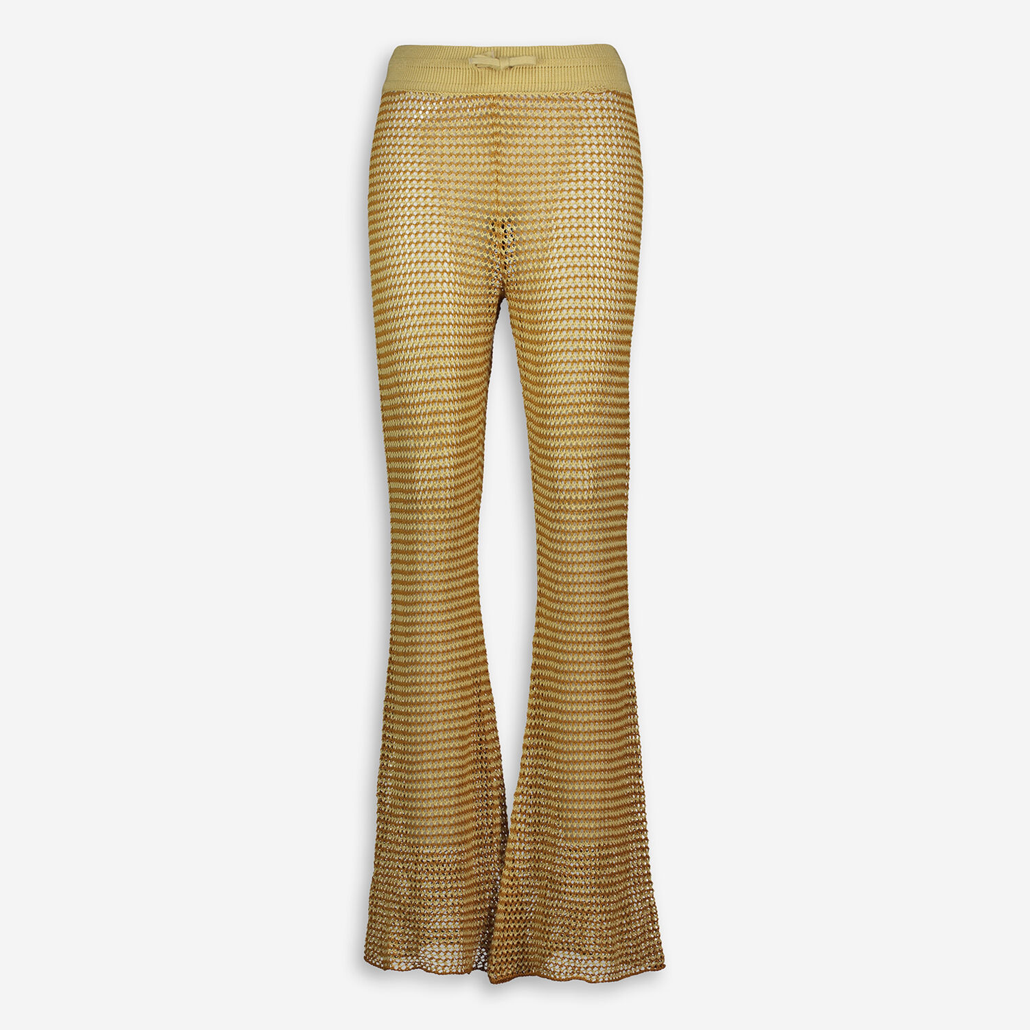 Brown & Yellow Knitted Linen Flared Trousers