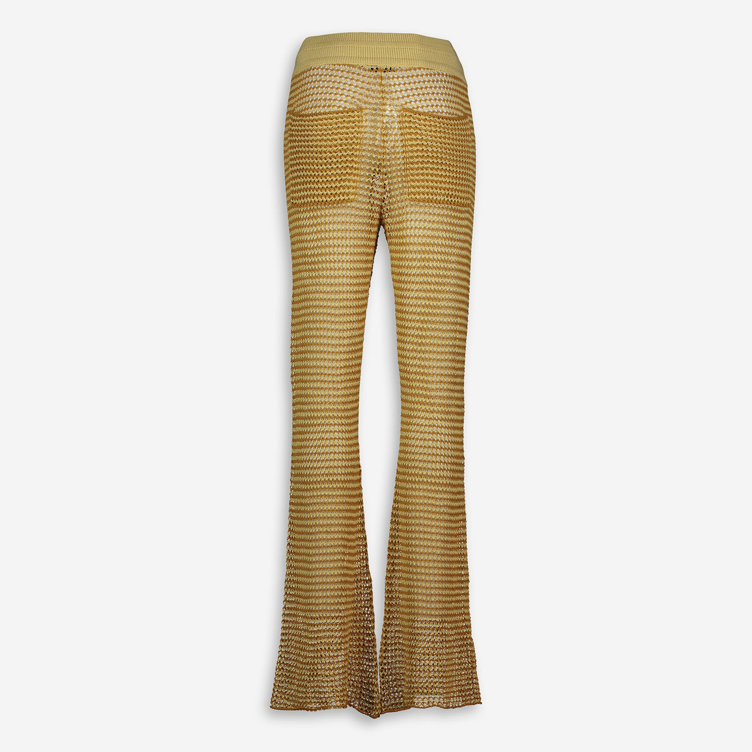 • Brown & Yellow Knitted Linen Flared Trousers