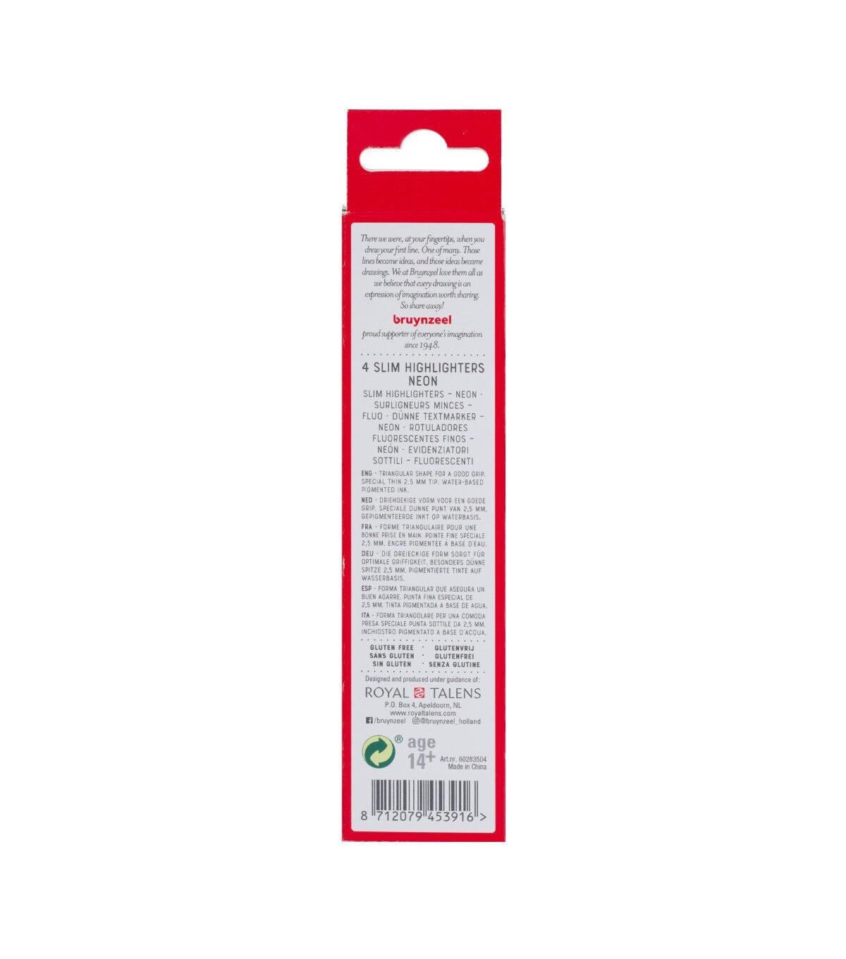 Highlight and underline with one marker! These highlighters from Bruynzeel have a chisel nib that can be used to create both thick and thin lines. The 4-Color Slim Set includes fluorescent yellow, fluorescent pink, fluorescent orange and fluorescent green with a special thin 2.5mm tip.