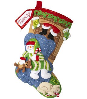 Snuggly snowman dreams of Christmas morning magic! Bucilla felt Christmas Stocking kits will help you make your craft project into a cherished family heirloom. Bucilla has been the number one crafter's choice in needle crafts and felt stocking kits for over 150 years. This package contains stamped felts, cotton floss, embellishments, needles and instructions. Design: Holiday Dreaming. Finished dimensions: 18 inches long. Made in USA.