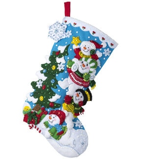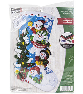 Festive designs, quality materials and generous embellishments continue to make Bucilla felt kits a favorite stitchery tradition. This package contains stamped felts, cotton floss, color separated sequins and beads, two needles and instructions. Design: Teamwork Santa. Finished dimensions: 18 inches long. Made in USA.