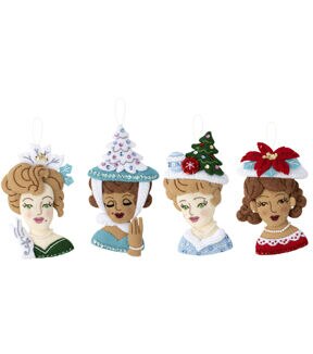 Rekindle the magic of Christmases past. Trim your tree this holiday season with felt ornament sets from Bucilla. Makes four ornaments. This package contains stamped felt, cotton embroidery floss, color-separated sequins and beads, two needles, and instructions. Design: Christmas Hat Parade. Finished dimensions: four 3.5X5.5 inch ornaments. Made in USA.