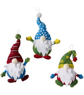 Trim your tree this holiday season with felt ornament sets from Bucilla. This package contains stamped felts, cotton floss, color-separated sequins & beads, needles, and instructions. Design: Christmas Gnomes. Finished Size: six 5x6.5 inch ornaments. Made in the USA.