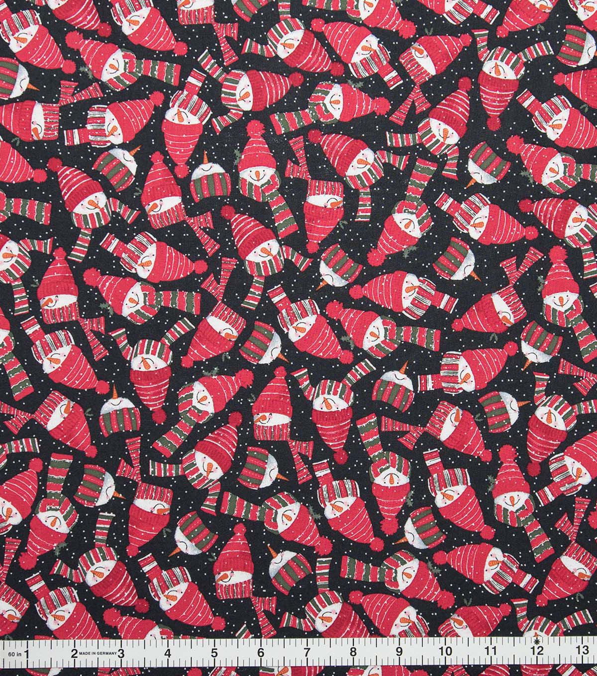Bundled Up Snowmen on Black Christmas Cotton Fabric