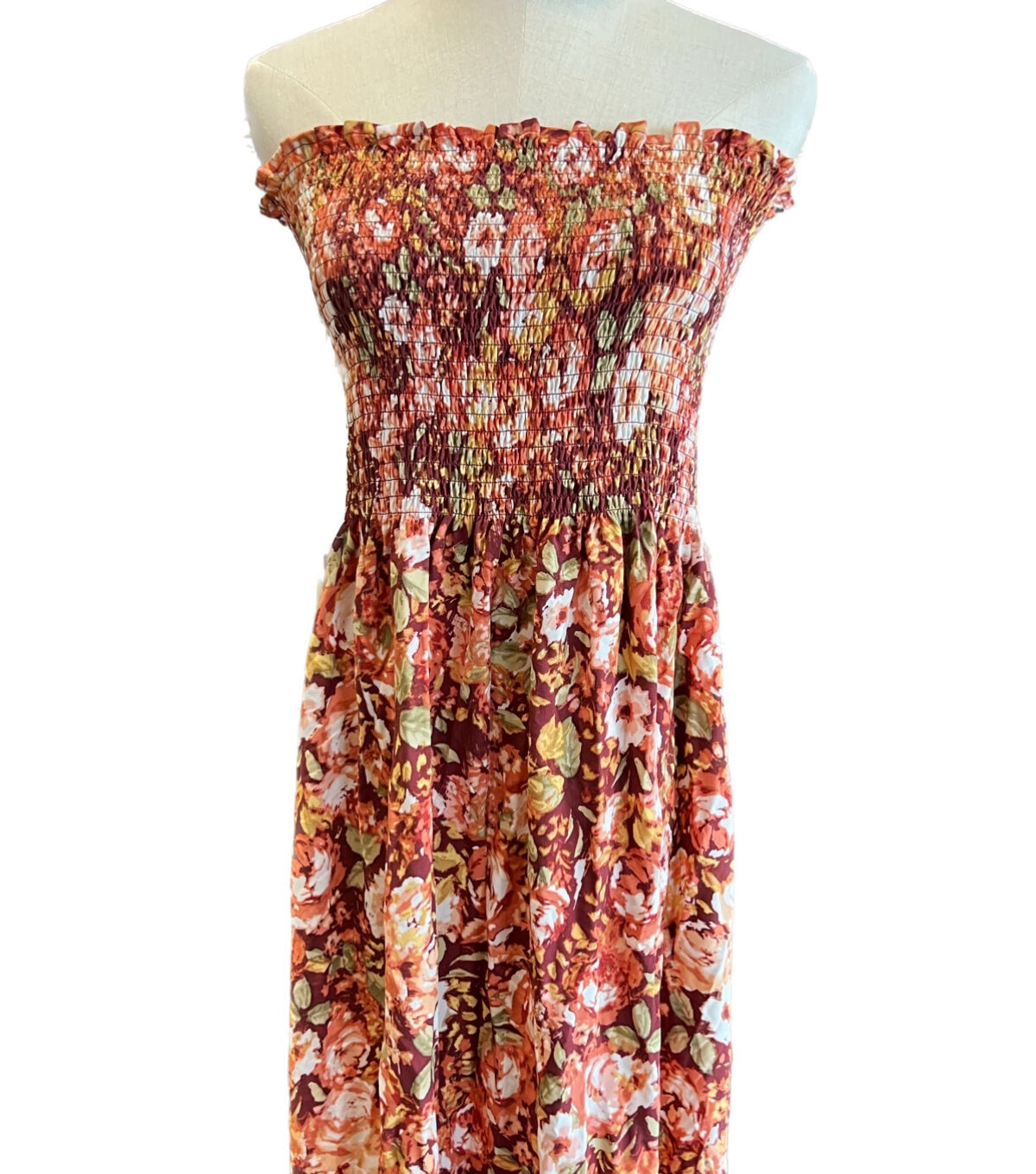 Looking for a quick and easy dress option? This fabric features a smocked width of 12 inches, allowing you to create a strapless smock dress with just one seam up the middle. Customize the length to your liking, whether you prefer a maxi dress or a shorter mini/midi dress or even a summer blouse. Use the fabric removed from the hem to create sleeves or add ruffles to the hem for a unique touch.