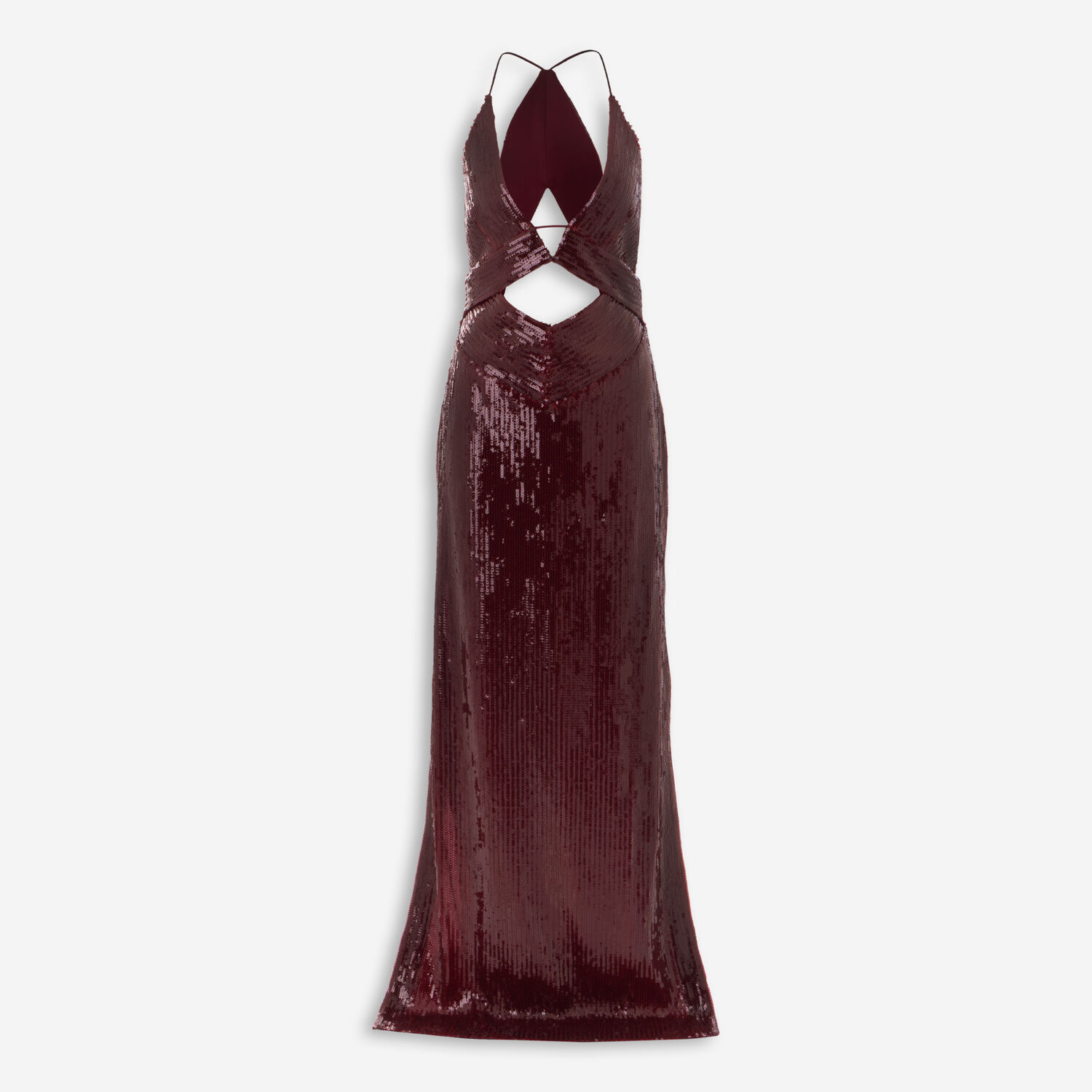 • Burgundy Red Sequin Embellished Gown