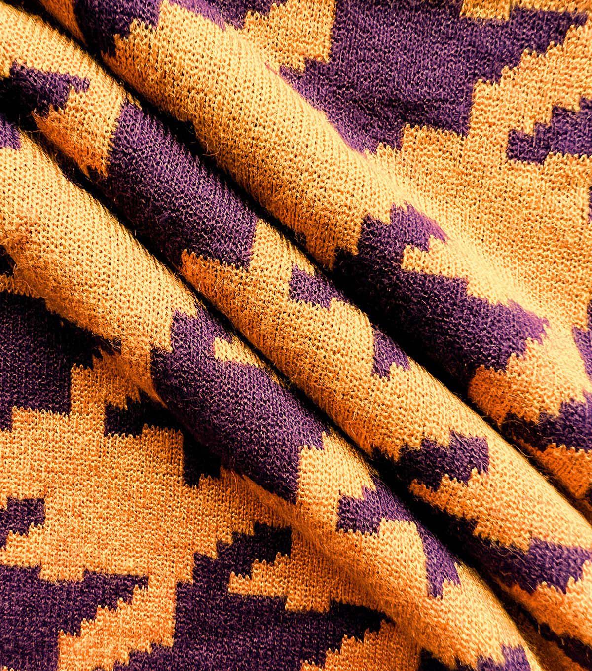 Burgundy & Yellow Reversible Houndstooth Jacquard Fabric