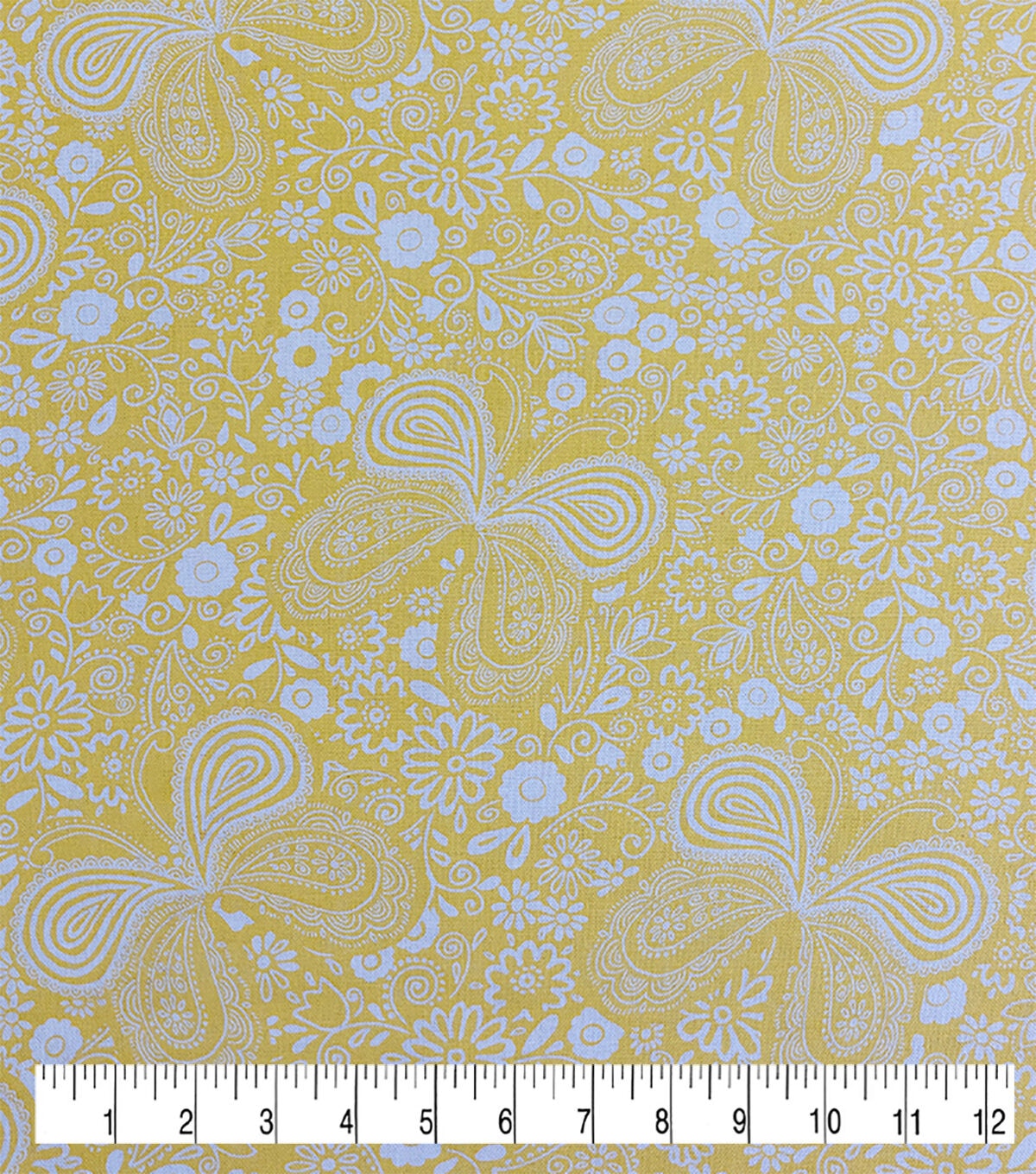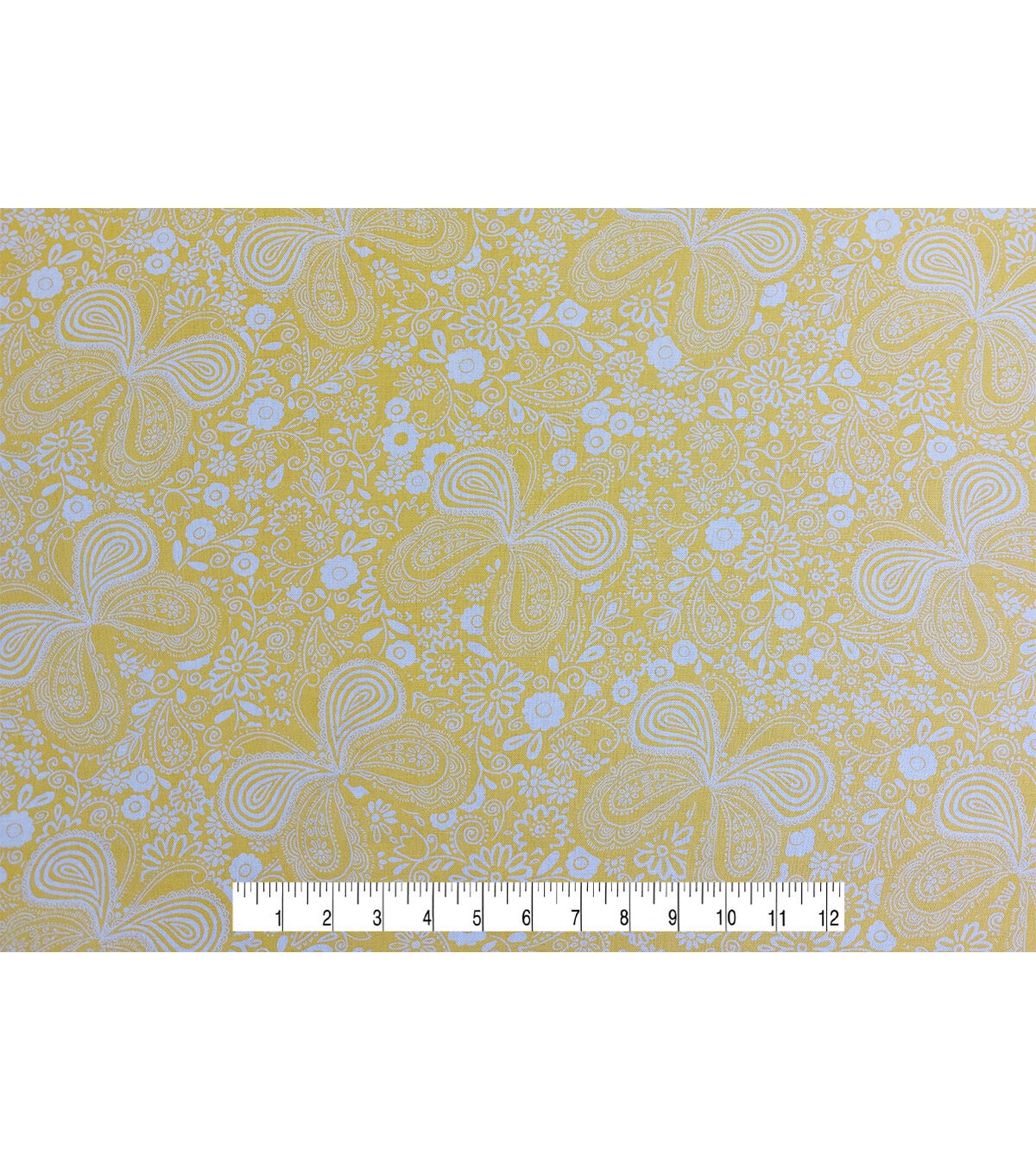 Butterflies & Floral on Yellow Quilt Cotton Fabric by Keepsake Calico