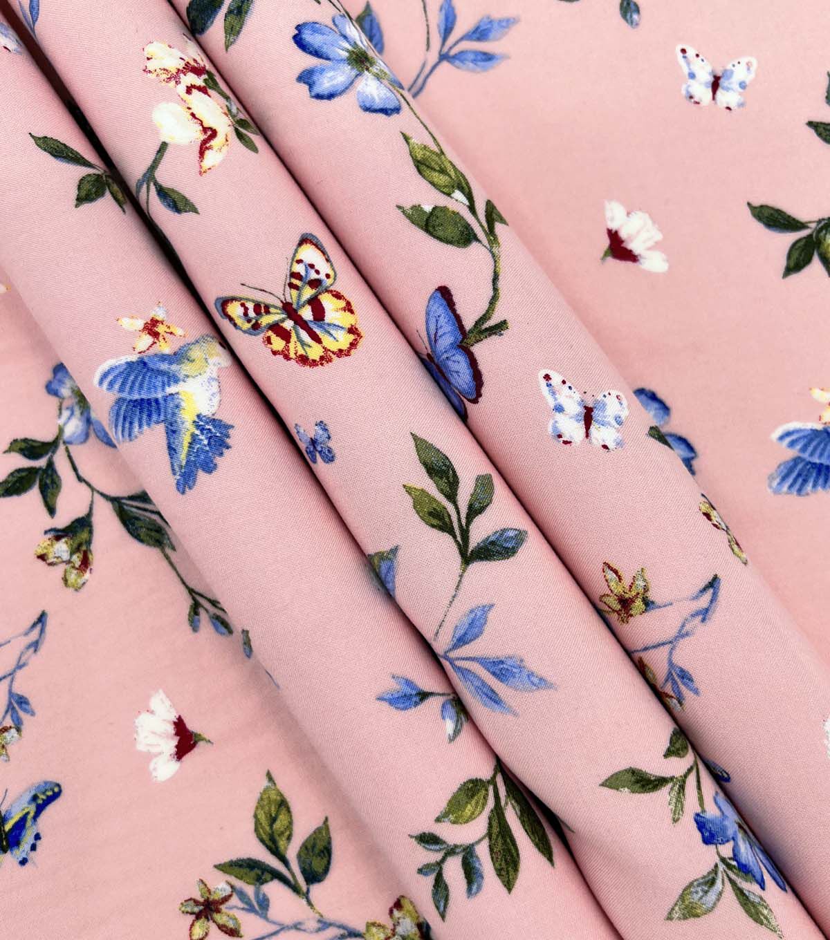 Get Ready to Soar with Butterflies on Pink Smocked Rayon Challis Fabric