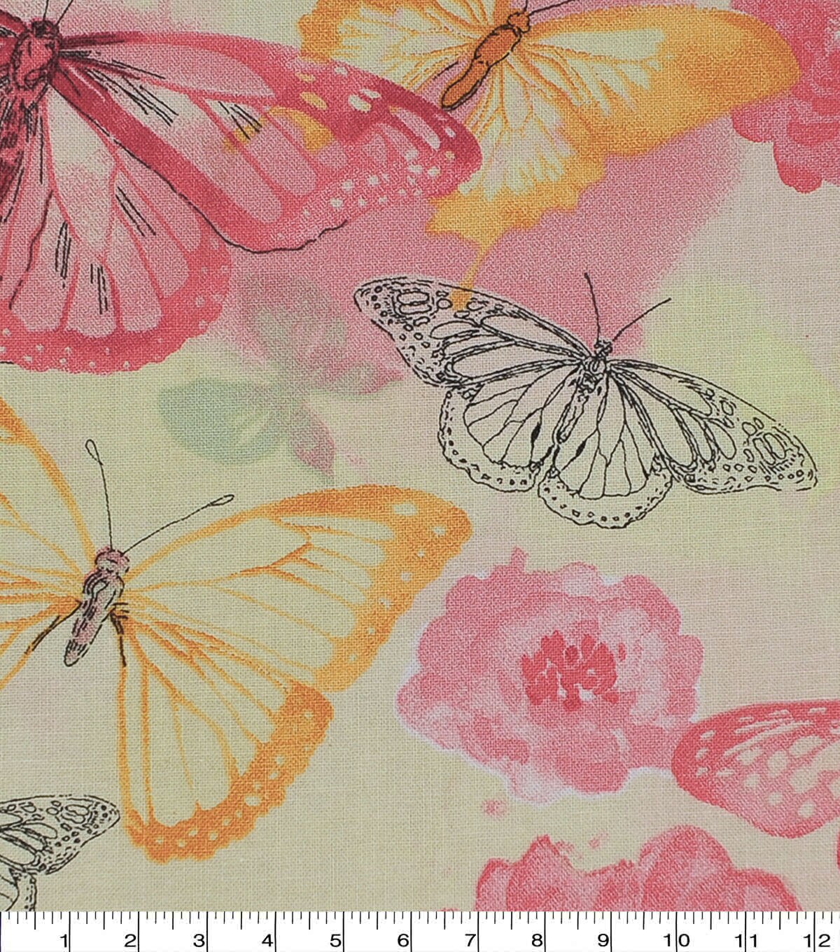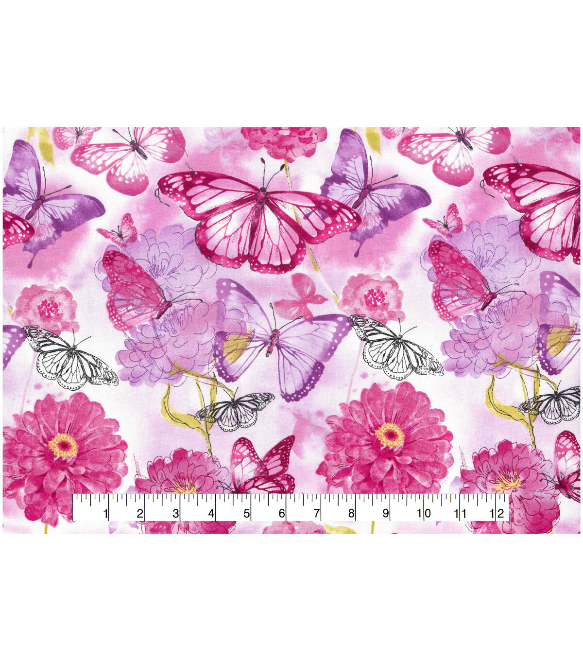 Step into a blossoming meadow with the "Butterfly Floral" design by Keepsake Calico. This 43-inch wide cotton fabric features a harmonious dance of butterflies amidst vibrant florals, ensuring a touch of nature in your projects. Crafted from pure cotton, it promises comfort and easy care. A delightful imported piece for your fabric library.