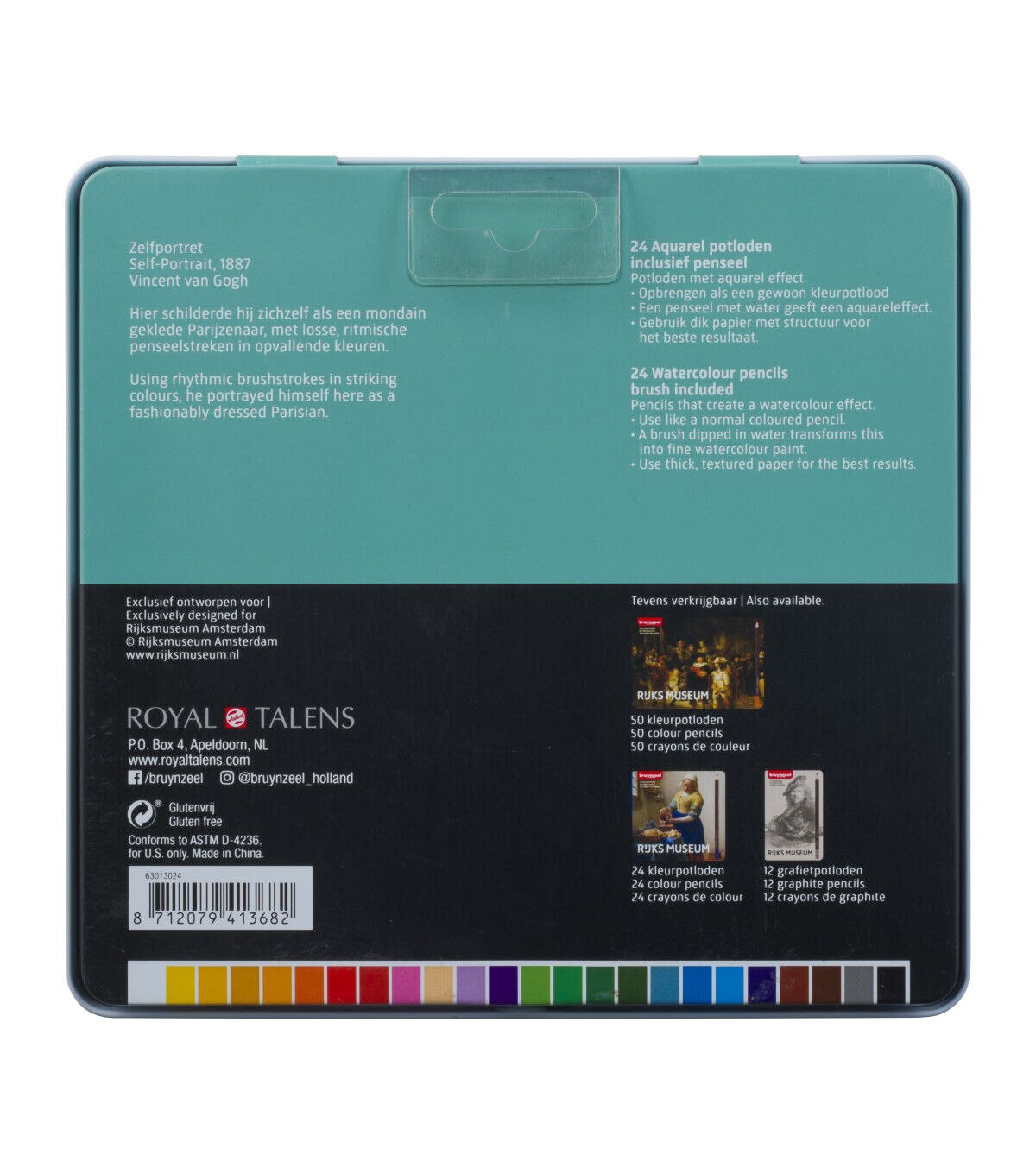 Designed in conjunction with the Rijksmuseum, one of the worlds most well known museums, these high quality watercolor pencils feature leads made with a liquid wax binder and are fully glued all the way down the core and casing for added durability. The light cedar casings provide excellent sharpening ability and fully centered cores will reduce breakage during use and in sharpening.
