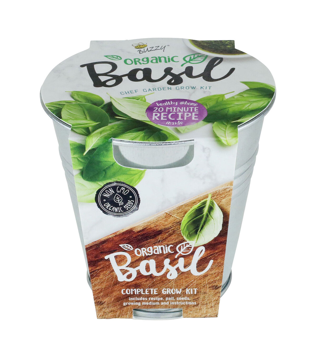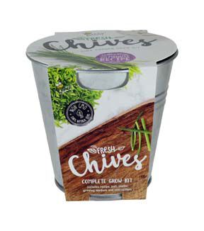 - Includes: Galvanized metal pail, growing medium, seed packet
