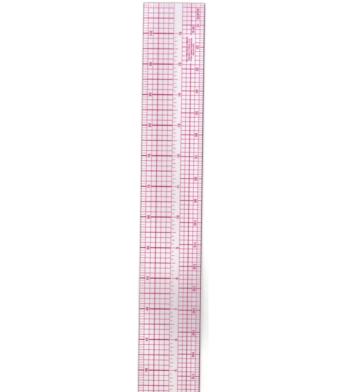 Ideal for graphic artists, this clear plastic 18" ruler is marked in picas, agates and 1/8" graduations. Measure with ease and confidence - an essential addition to your workspace.