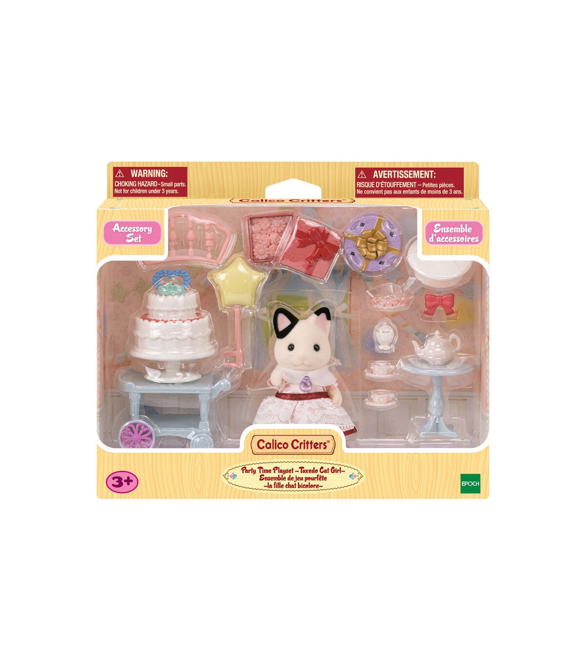 - Ready to play set includes poseable Tuxedo Cat girl figure dressed in removeable clothing and 27 accessories to throw a fabulous birthday party in Calico Village!