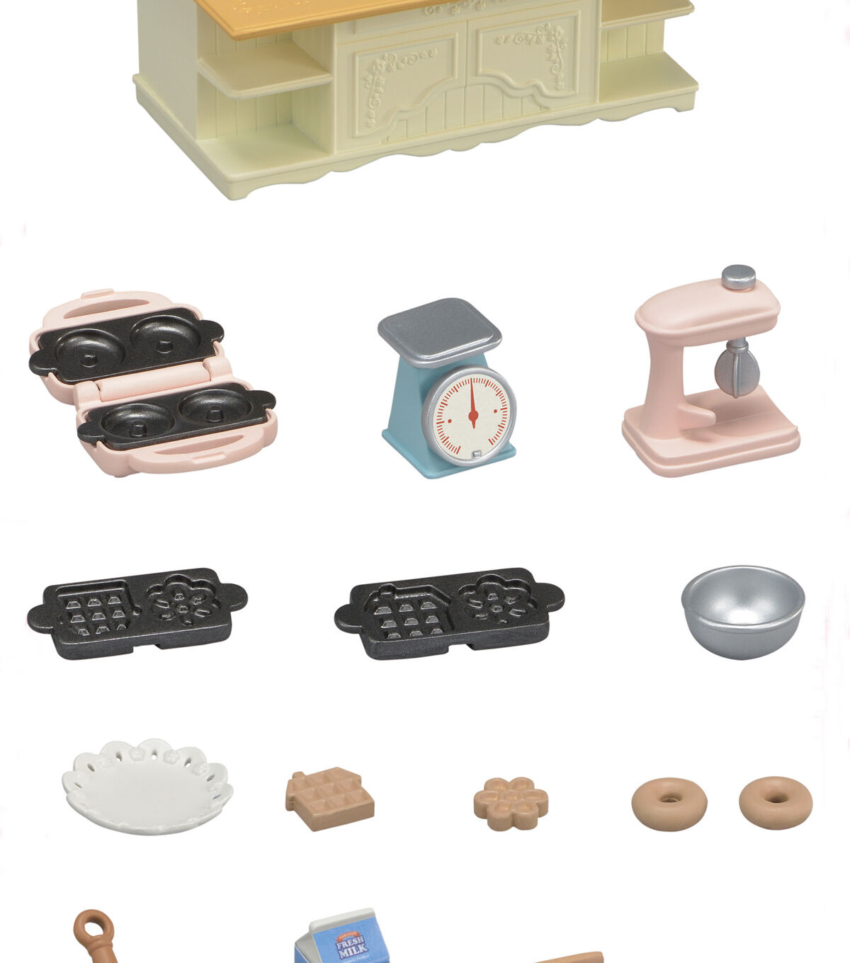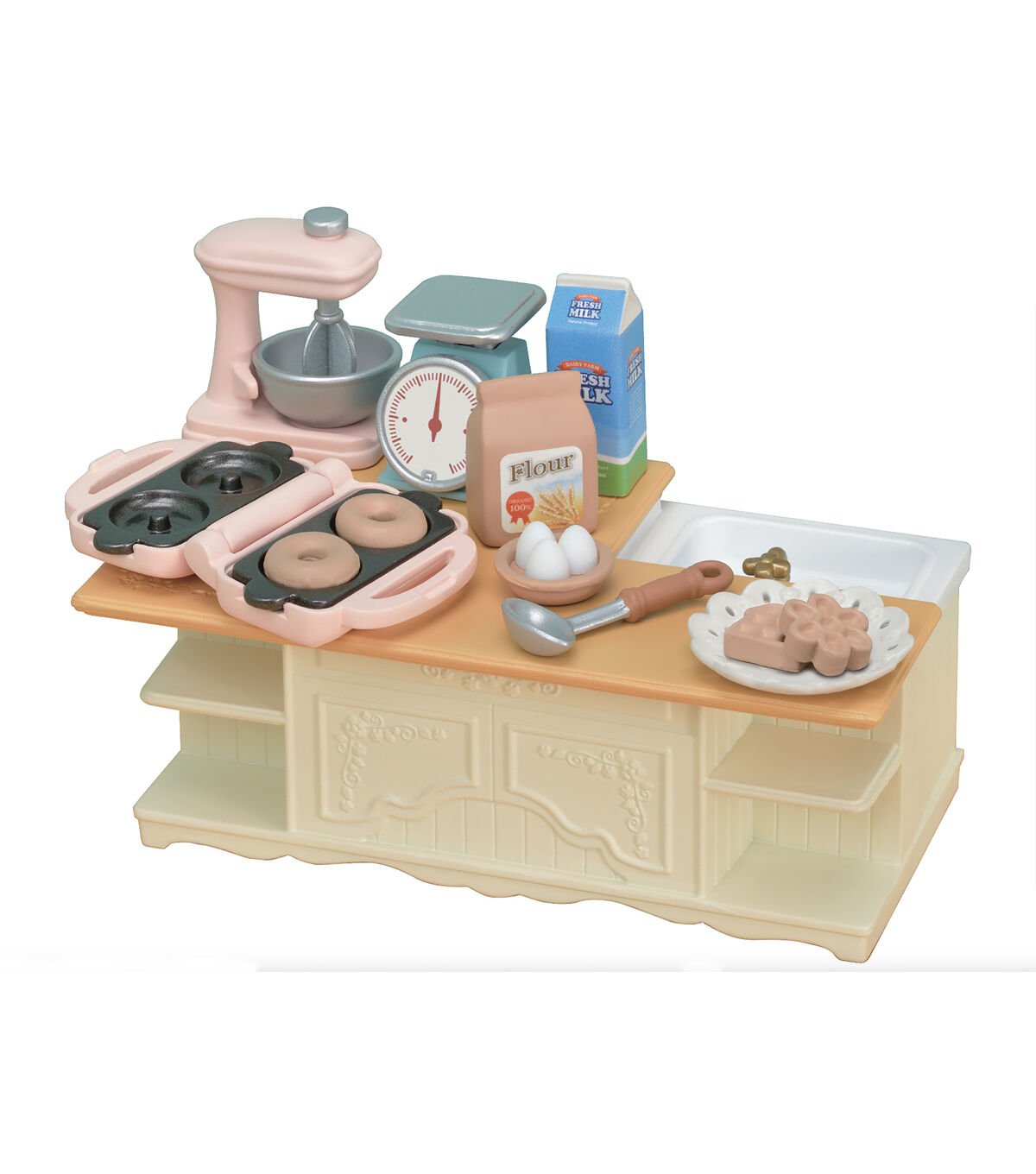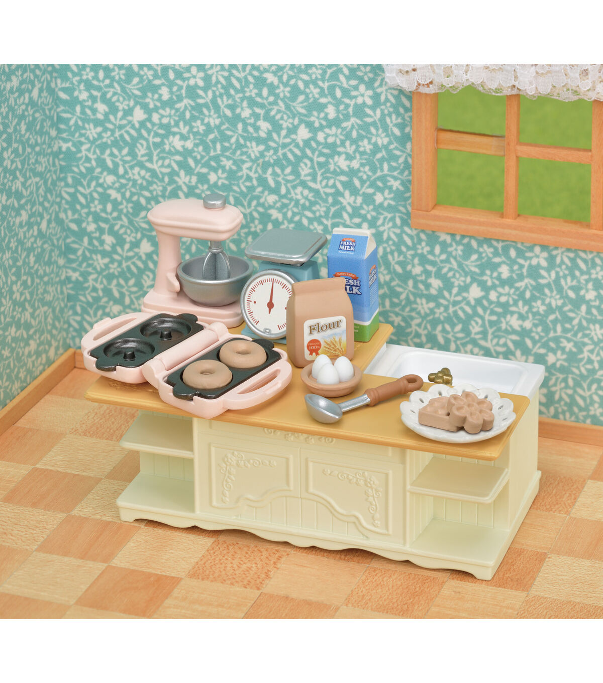 This set includes a kitchen island with sink and kitchen appliances with special features. Kitchen Island is accessible from many different directions, and is the perfect place to make donuts and waffles with the entire family. Includes kitchen appliances each with their own special feature, such as measuring scales that move up and down, a turnable mixer, and a waffle & donut maker with exchangeable molds. Have even more fun playing together with our other kitchen furniture and designs (sold separately). For children ages 3 and up.