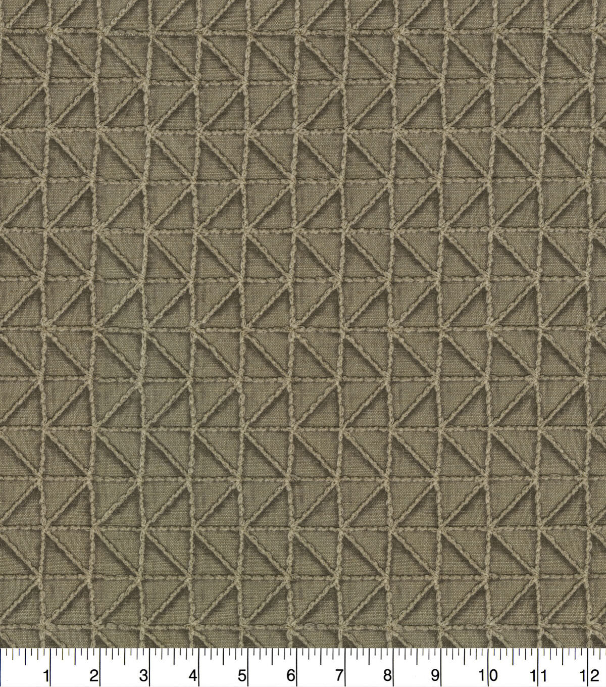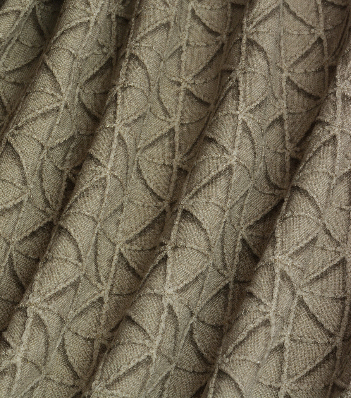 Calliope Emb - cement is an embroidred small scale brownish gray geometric design. Calliope has a wonderful three-dinemsional look enhanced by the small scale squares. Calliope suitable for drapery, throw pillows, cornice & headboards and top of bed applications.